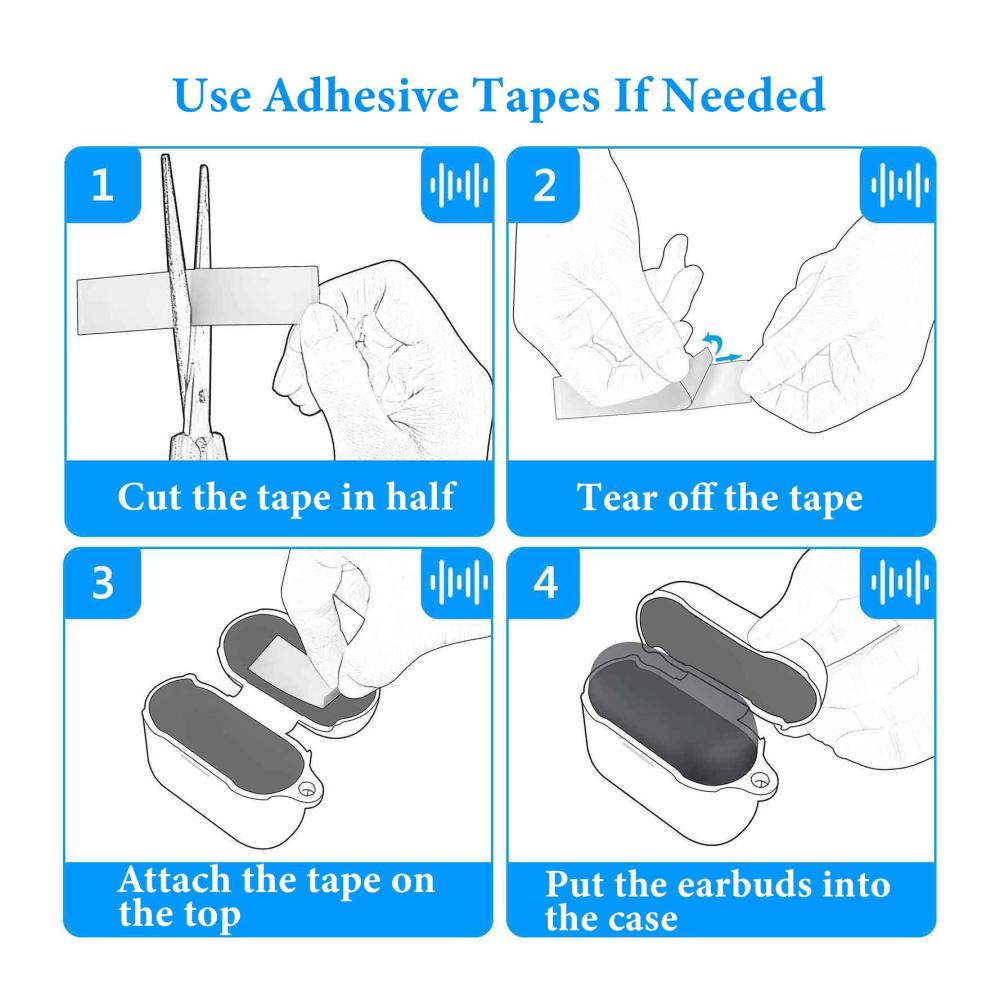 Klebestreifen innen für eine sicherere Passform. Tragbar mit Schlüsselbundhaken. Spezielle Aussparung zum Aufladen Ihrer Ohrhörer, ohne die Abdeckung zu entfernen.