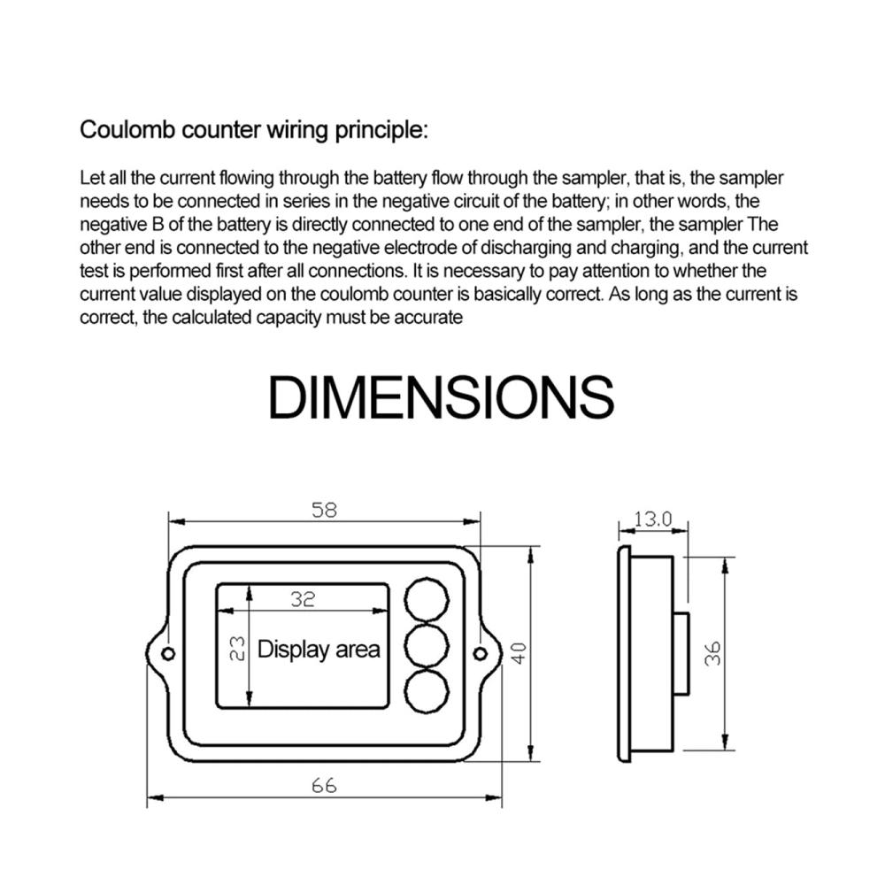 Richeyty Typ: BatterietesterModell: TK15Betriebsspannungsbereich: DC8-120VStrom: 100AGesamtgröße: 66 x 40 x 10 mmGröße der Anzeigefläche: 32 x 23 mmExterne normale Sampler-Größe: 23 x 18 x 5 mmTechnische Parameter:Betriebsstromverbrauch: 8,0 mA (Max: 10,0 mA)Standby-Stromverbrauch: 0,5 mA (Max: 0,8 mA)Stromverbrauch im Schlafmodus: 50 (Max: 60 )Genauigkeit der Spannungserfassung: /-1,0 %Aktuelle Erfassungsgenauigkeit: /-1,0 %Unter Verwendung des umgebenden Temperaturbereichs: 0-35CelsiusEinschaltstrom der Hintergrundbeleuchtung: 40 mA (Max: 50 mA)Hintergrundbeleuchtung aus Strom: 30mA (max.: 40mA)Einstellwert der Batteriekapazität: 0-590AExterner normaler Sampler-Arbeitsstrom: 30,0 A (Max: 50 A)Betriebsstrom des externen großen Samplers: 50,0 A (max.: 100 A)Achtung: Die Mindestspannung des Akkupacks sollte sein als die Mindestbetriebsspannung des Coulometers.Heimwerkerbedarf: ELEKTRISCHTyp: FahrzeugbatterietesterGewicht: 20gFarbe: SchwarzMaterial:ABSPackungsinhalt:1 x 80 V Batterietester1 x abgeschirmtes Kabel1 x Shunt1 x Benutzerhandbuch in EnglischNur der oben genannte Paketinhalt, andere Produkte sind nicht enthalten.Hinweis: Wegen der Lichtreflexion und Bildschirme könnte der Farbeton in den Fotos sowie des tatsächlichen Produkts etwas unterschiedlich sein. Der erlaubte Messfehler ist /- 1-3 cm.