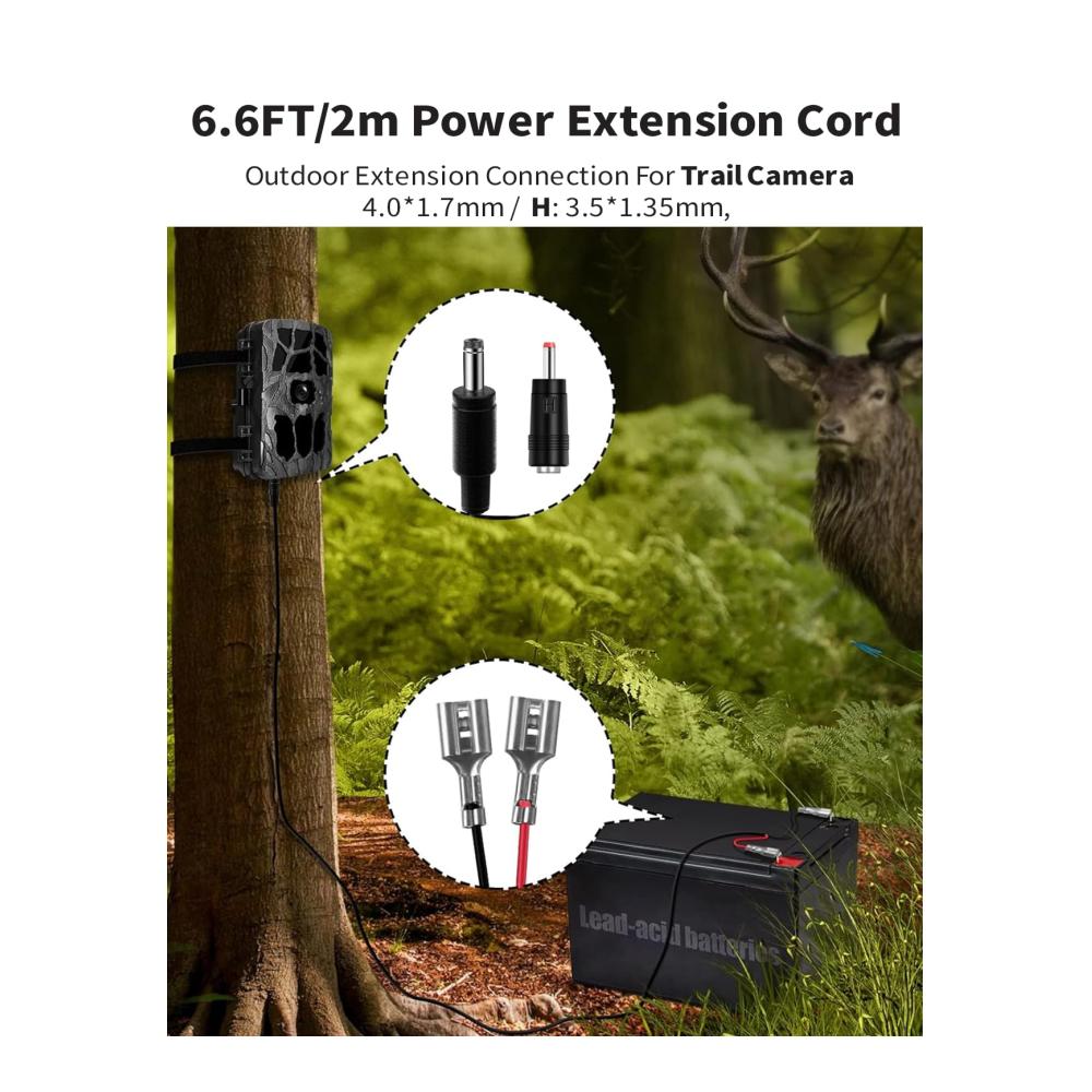 • Vielseitig und langlebig: Das 2 Meter Kabel mit einem 4,0 mm * 1,7 mm Stecker (inklusive 3,5*1,35 Adapter) ist kompatibel mit den meisten gängigen Akkutypen und Trail-Kameras. Es hält Spannungen von bis zu 300V stand.