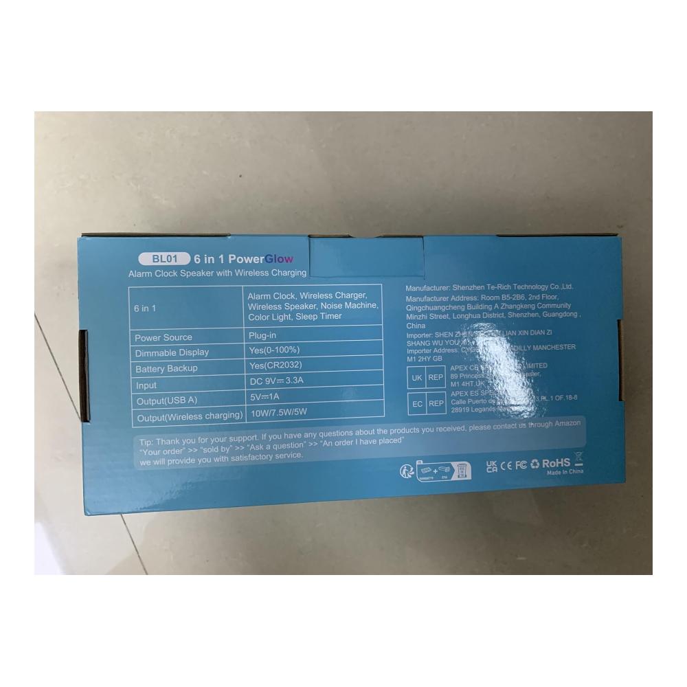 - 1 x Bluetooth-Wecker mit kabelloser Aufladung, 1xNetzteil, 1 x Bedienungsanleitung.