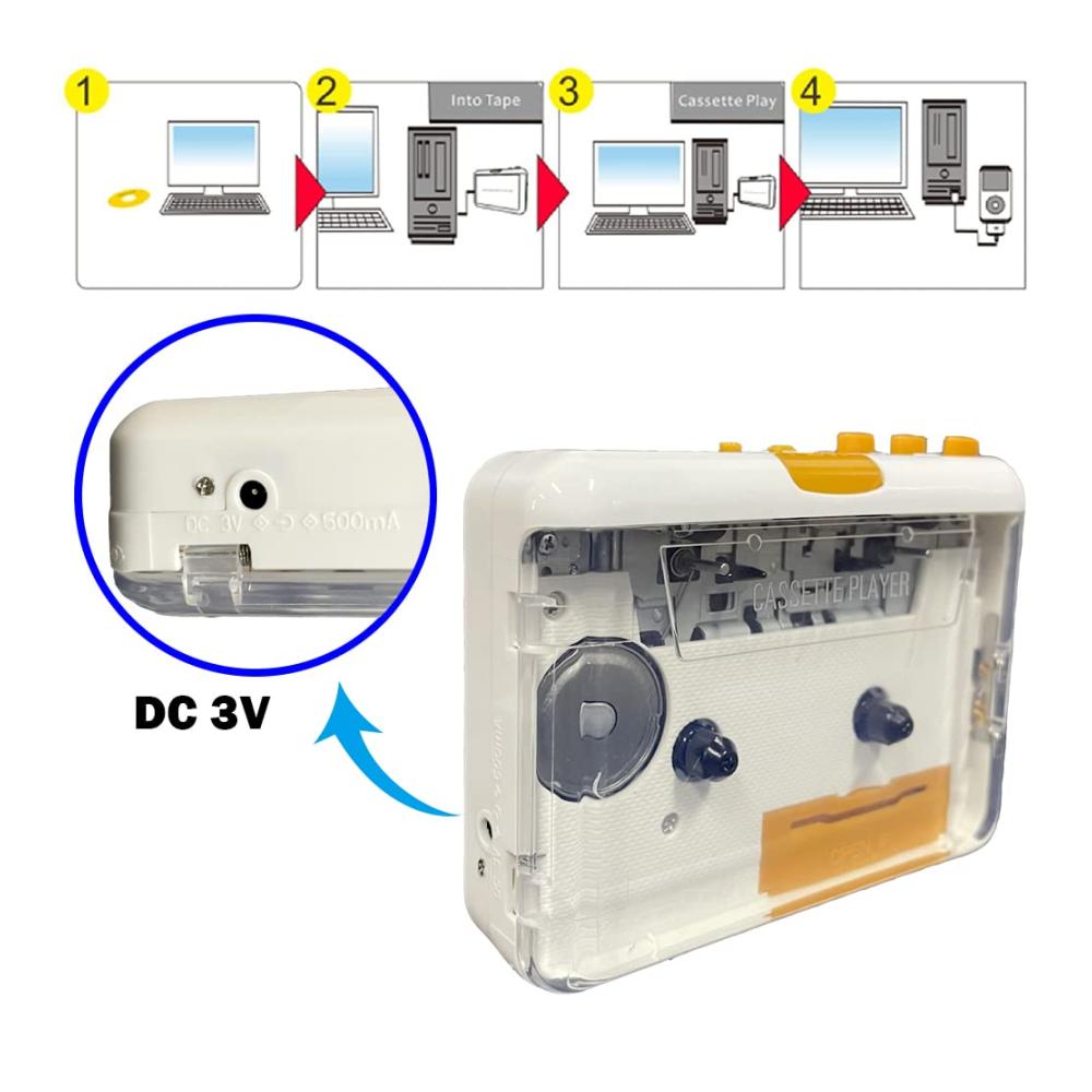 Y&H Tragbarer Kassettenspieler Nimmt MP3-Audio-Musik über den PC auf Kompatibel mit Laptops und Personal Computern
