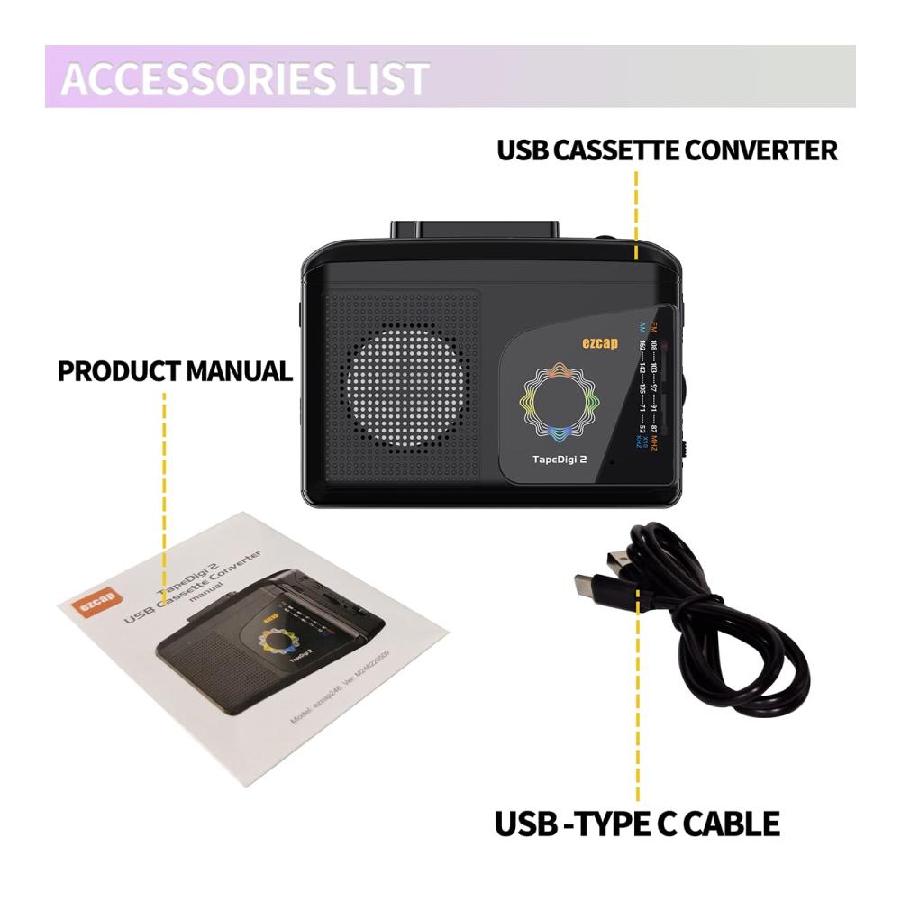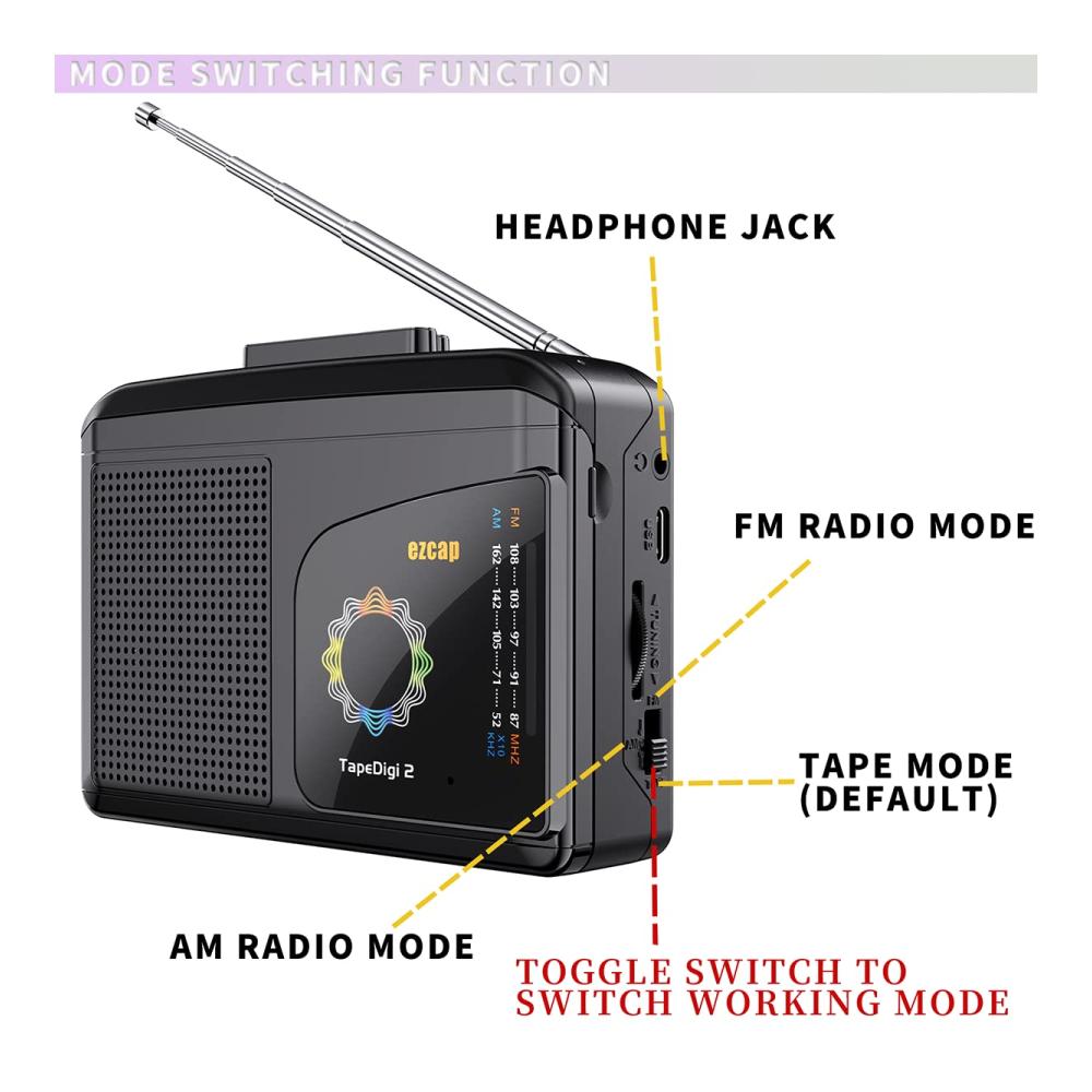 Entdecken Sie den ezcap246 TapeDigi 2 USB-Kassettenkonverter – Ihr Tor zu einem modernen und nostalgischen Musikerlebnis! Verwandeln Sie Ihre geliebten Kassetten schnell und mühelos in MP3-Dateien oder andere Formate und speichern Sie sie auf Ihrem Computer. Genießen Sie Ihre Lieblingsmusik auf jedem Gerät Ihrer Wahl, sei es ein Smartphone oder Bluetooth-Lautsprecher. Dieser Kassettenkonverter bietet nicht nur die Funktion eines Walkmans, sondern ermöglicht auch das Hören von AM- und FM-Radioprogrammen mit eingebauten Lautsprechern, ohne dass Kopfhörer erforderlich sind. Dank der UAC-Technologie ist keine manuelle Treiberinstallation erforderlich, und er ist sowohl mit Windows als auch mit Mac OS kompatibel. Mit einer Vielzahl von Funktionen wie der flexiblen Stromversorgung über Batterien oder USB und einer farbigen Betriebsanzeige ist der ezcap246 TapeDigi 2 USB-Kassettenkonverter ein Must-Have für Musikliebhaber!