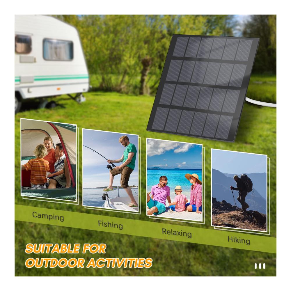 【Vielfältige Anwendungen】 Dieses Solarpanel-Ladegerät kann zum Aufladen von Mobiltelefonen, kleinen USB-Lüftern, Mini-LED-Leuchten, Heimmonitorkameras usw. verwendet werden, wodurch Ihr Leben umweltfreundlicher wird.