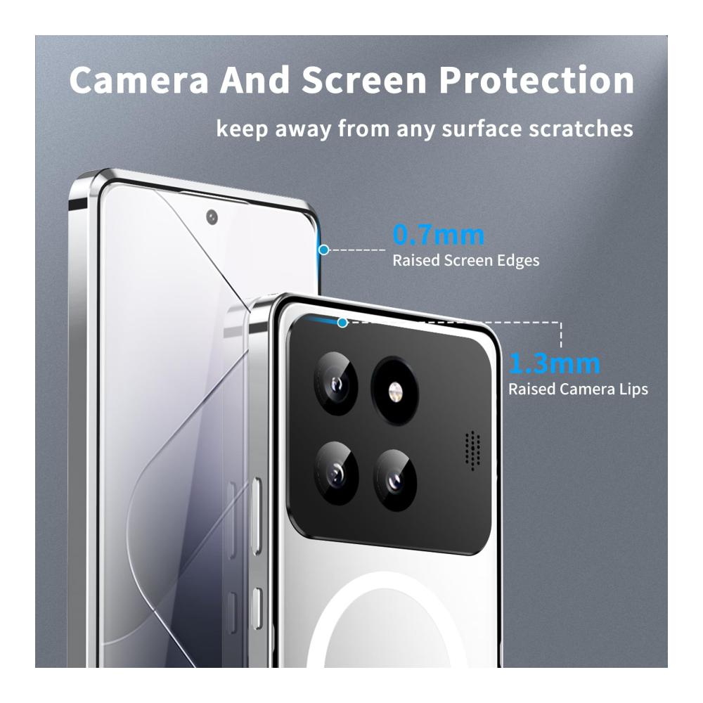 Die Hülle für Xiaomi 14 Pro Transparent Handyhülle Metal Lens Cover Bumper Case für Xiaomi 14 Pro(3) bietet Standard-Schutz und besteht aus hochwertigem PC und TPU. Das kristallähnliche transparente Design zeigt die ursprüngliche Schönheit des Telefons und unterstützt schnelles kabelloses Laden. Dank des schlanken und ultraleichten Designs passt die Hülle perfekt zum Telefon und bietet einen umfassenden Schutz vor Stößen, Kratzern und Stürzen. Wählen Sie diese Hülle für eine gesunde und qualitativ hochwertige Lebensqualität.