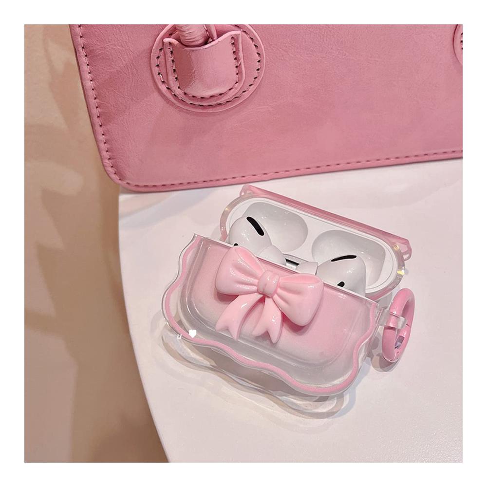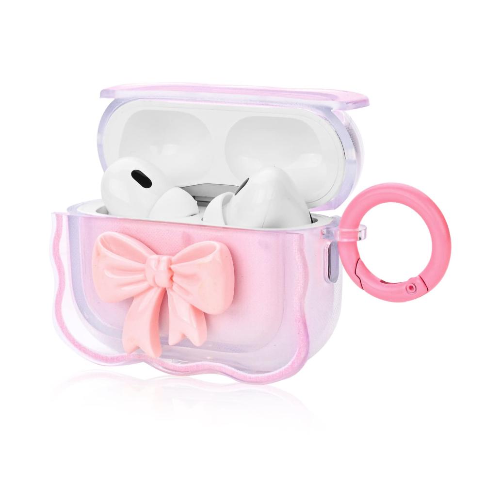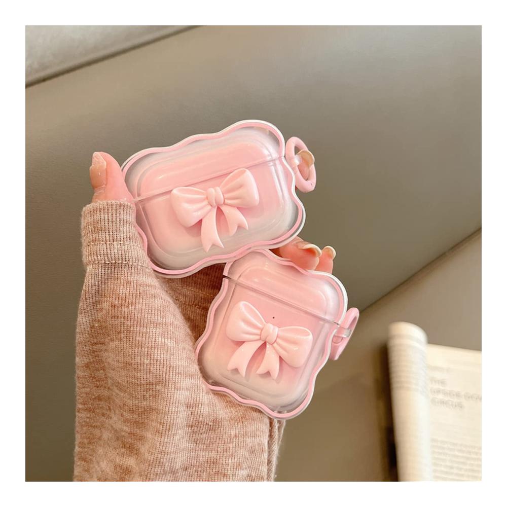 Süße AirPod Pro 2 Hülle mit Schlüsselanhänger, 3D Rosa Schleife Design Weiche Klar Schutzhülle Kompatibel für AirPods Pro 2nd Generation 2022 Hülle für Frauen und Mädchen