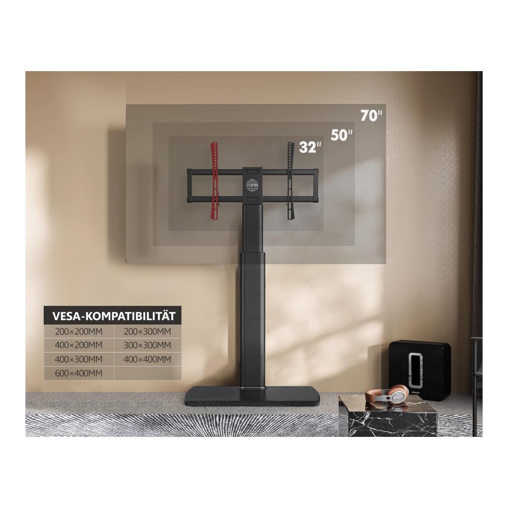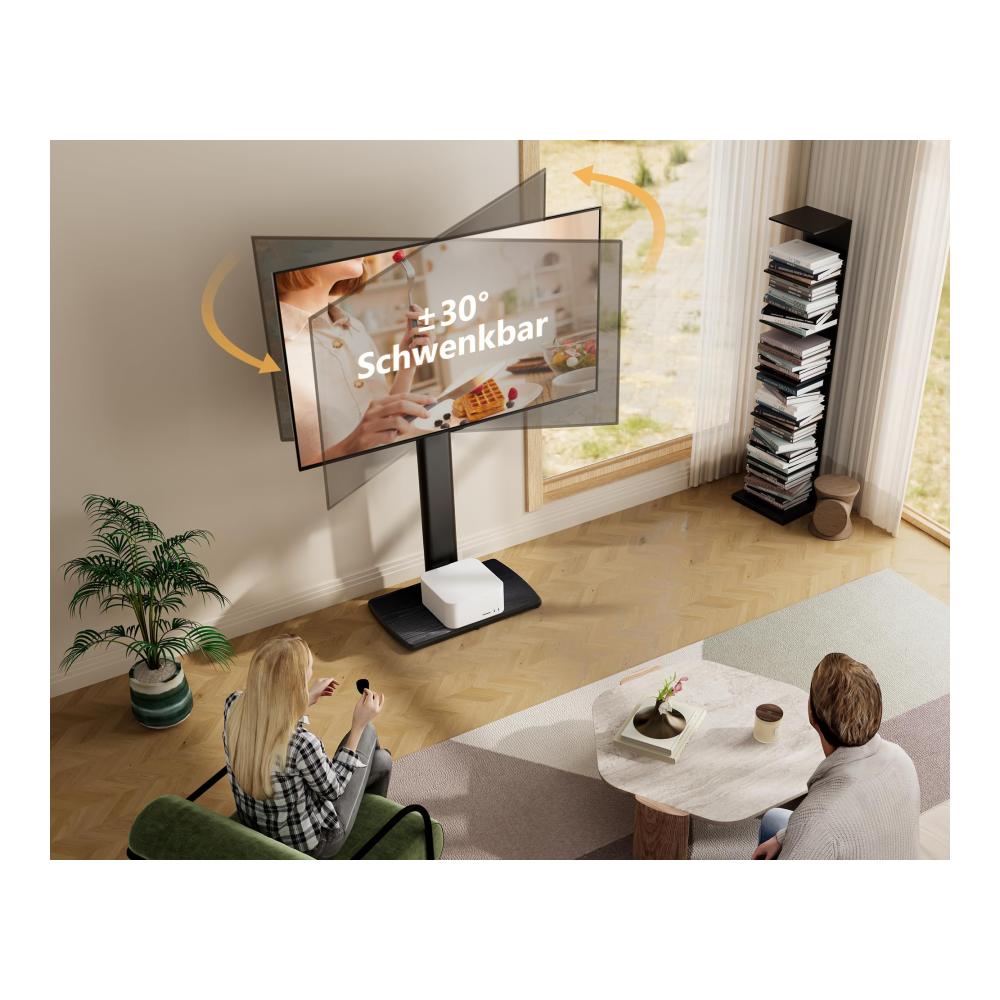 Erleben Sie mit unserem TV Bodenständer mit Holzbasis ein optimales Heimkinoerlebnis. Der Standfuß ermöglicht eine flexible Bodenmontage und bietet eine Schwenkfunktion für einen einstellbaren Betrachtungswinkel. Mit einer maximalen Neigung von 60 Grad passt er perfekt für Fernseher und Monitore von 32 bis 70 Zoll. Das hochwertige Material aus Holz und Metall garantiert Stabilität und Langlebigkeit. In elegantem Schwarz gehalten, fügt sich dieser TV-Ständer nahtlos in jedes Wohnambiente ein.