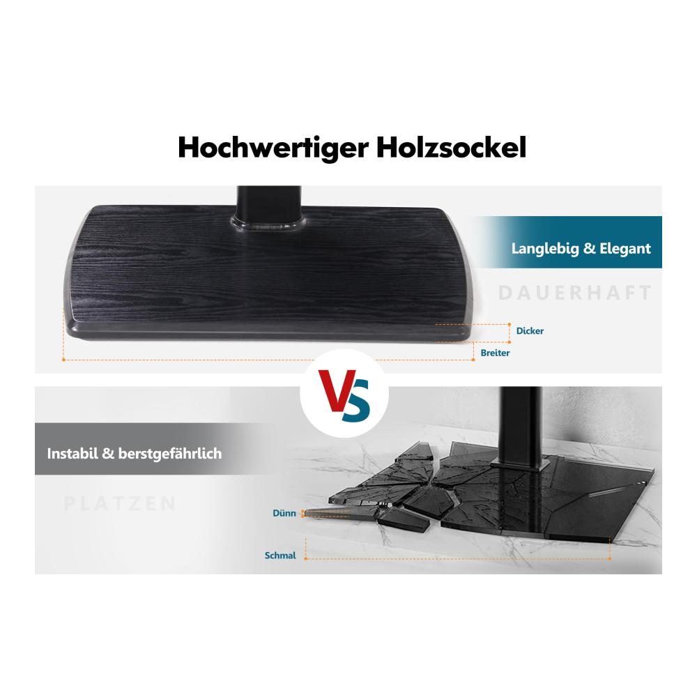 Be the first to review “TV Bodenständer mit Holzbasis | Standfuß höhenverstellbar & schwenkbar | Für 32-70 Zoll Flachbildschirme bis 40kg | Max. VESA 400*600 | Stilvoller TV Ständer für optimales Heimkino-Erlebnis” Antworten abbrechen