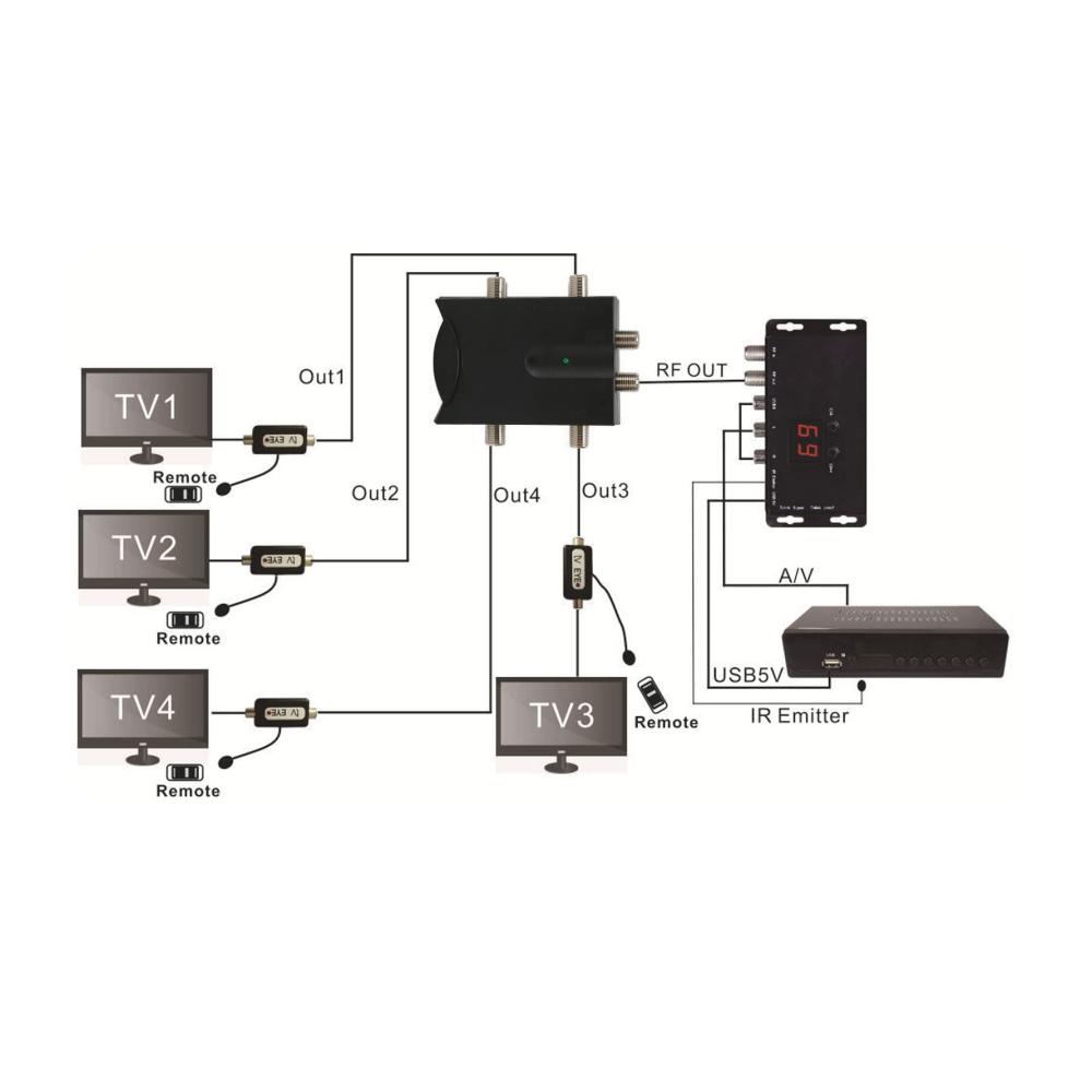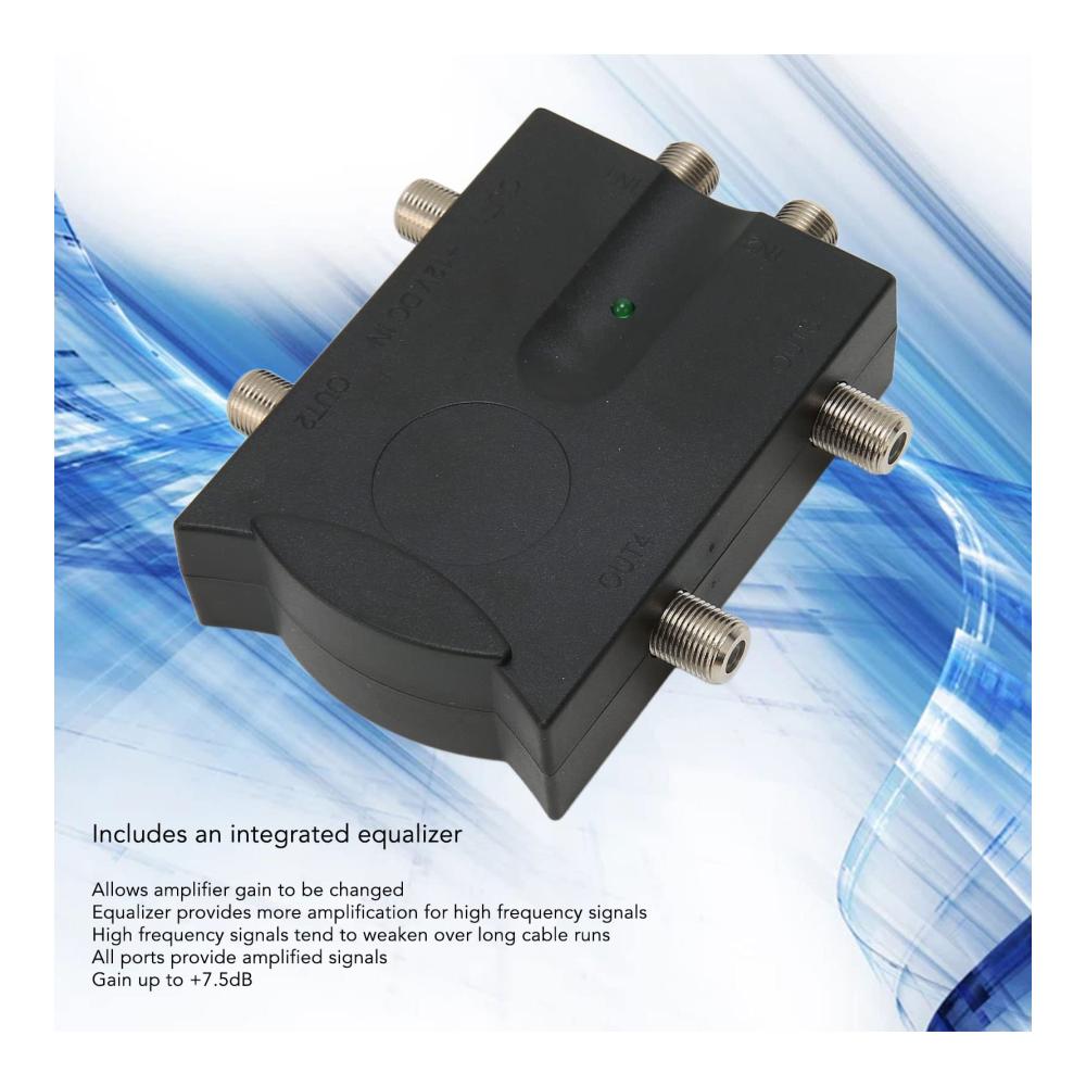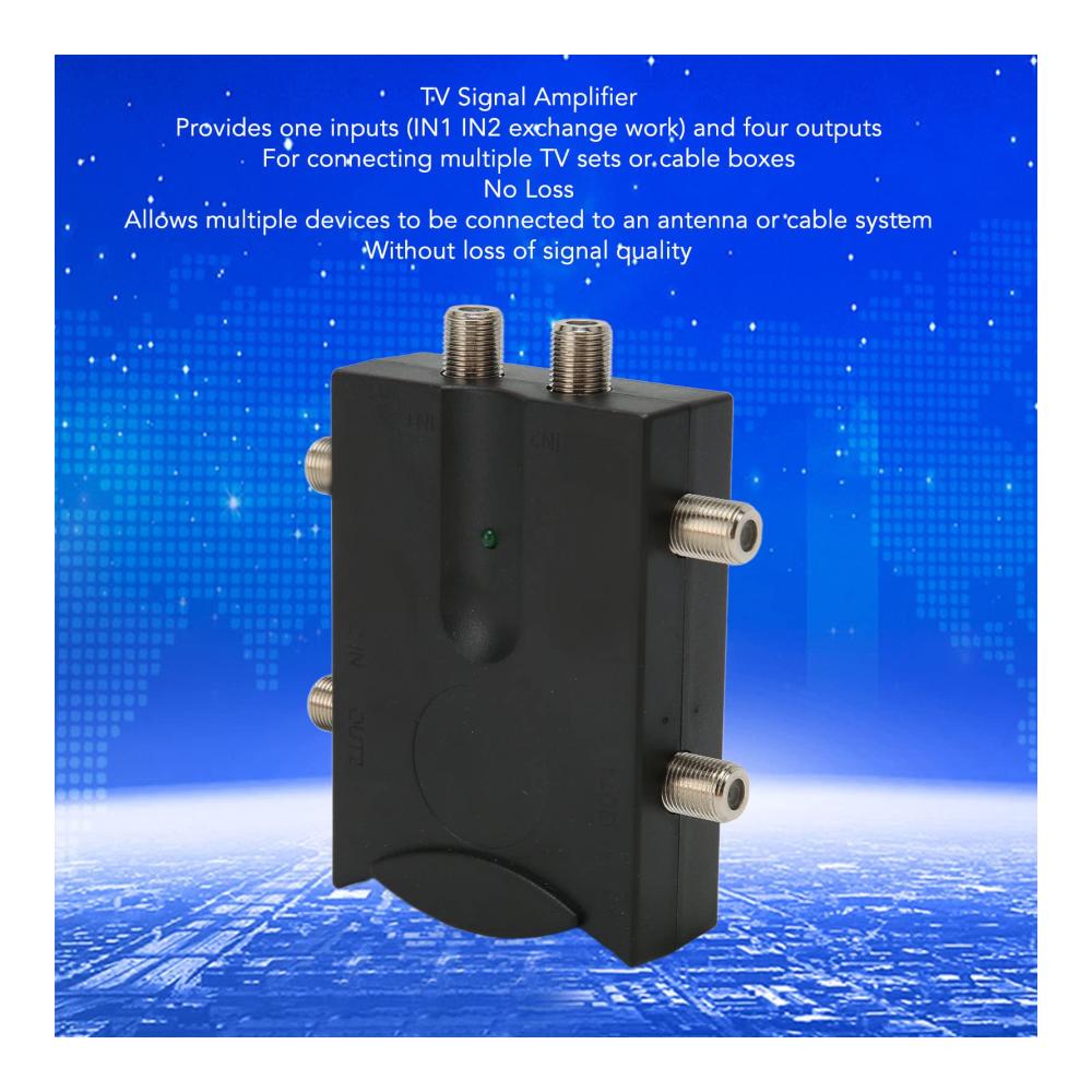 Vielfältige Anschlussmöglichkeiten: Dieser TV-Signalverstärker verfügt über einen Eingang (IN1 IN2, umschaltbar) und vier Ausgänge, die es Ihnen ermöglichen, mehrere TV-Geräte oder Kabelboxen anzuschließen. Mit den Typ-F-Eingangs- und Ausgangsanschlüssen ist die Installation und Verwendung denkbar einfach.