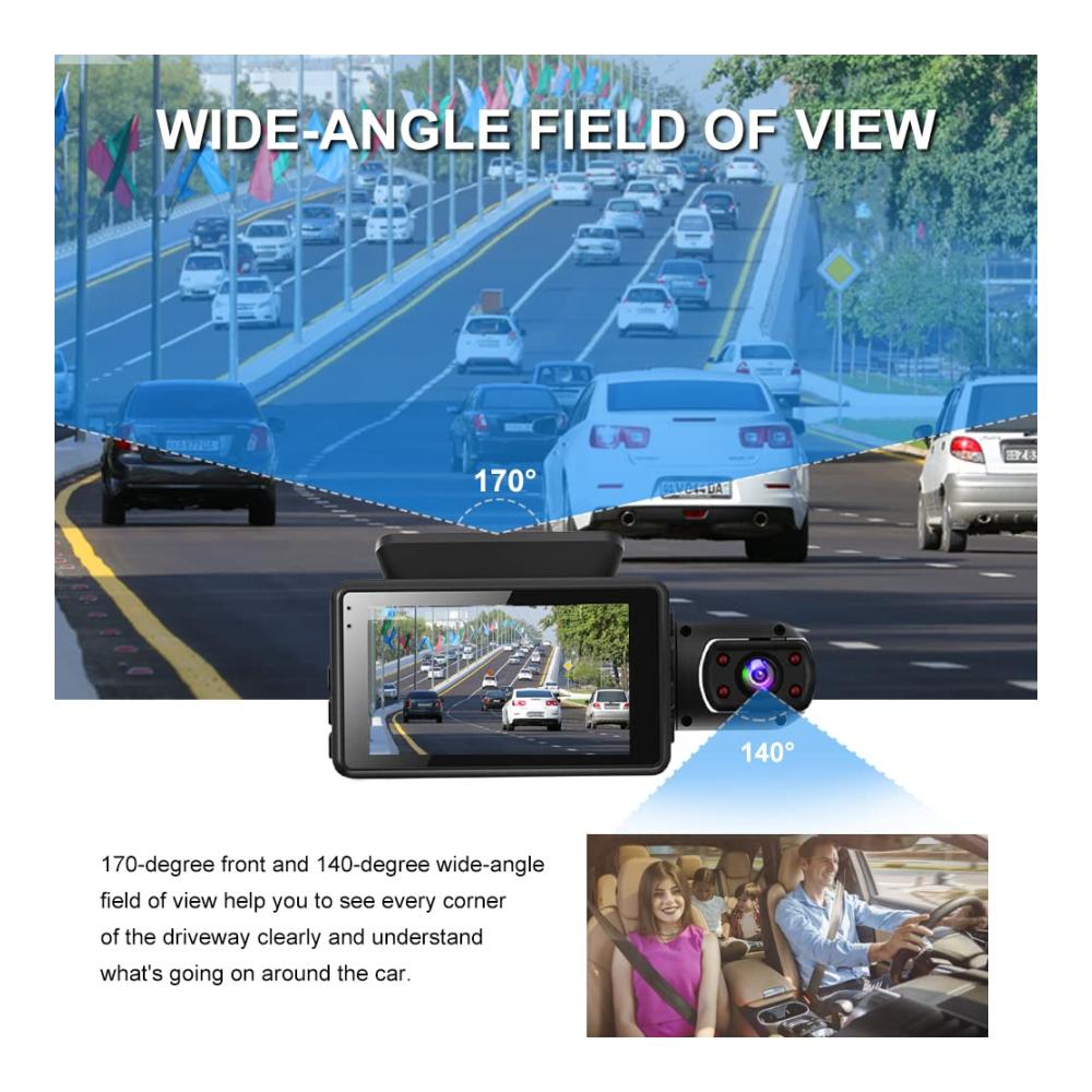 【Weitwinkel-Sichtfeld】: Die Dashboard-Kamera verwendet zwei Kameras, von denen sich eine um 360 Grad nach vorne und hinten drehen kann, um alle Richtungen zu überwachen und sicher zu fahren. Die hintere hochauflösende wasserdichte Linse deckt problemlos den toten Bereich des rückwärts fahrenden Fahrzeugs ab, sodass Sie sich beim Rückwärtsfahren nicht umschauen müssen und das Rückfahrbild einfach gespeichert werden kann.