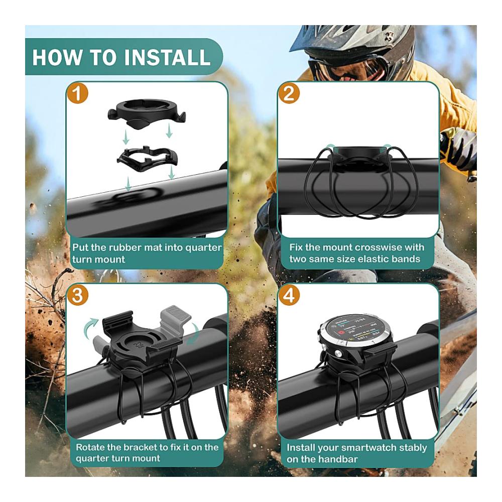 Unsere 22mm Quickfit Quarter Turn Bike Mount ist die ideale Halterung für Ihre Garmin Fenix 7/6/6 Pro, Quatix 6 Titanium Smartwatch. Mit einem sicheren Schließsystem für Fahrradhalterungen und einer einfachen Installation am Fahrradlenker bietet sie eine Head-Up-Positionierung und erhöhte Sicherheit. Dank der breiten Kompatibilität passt sie zu verschiedenen Fahrradlenkern. Die robuste Konstruktion aus Polycarbonat gewährleistet Langlebigkeit und Schutz für Ihre Smartwatch. In der Box finden Sie alles, was Sie für die Montage benötigen.