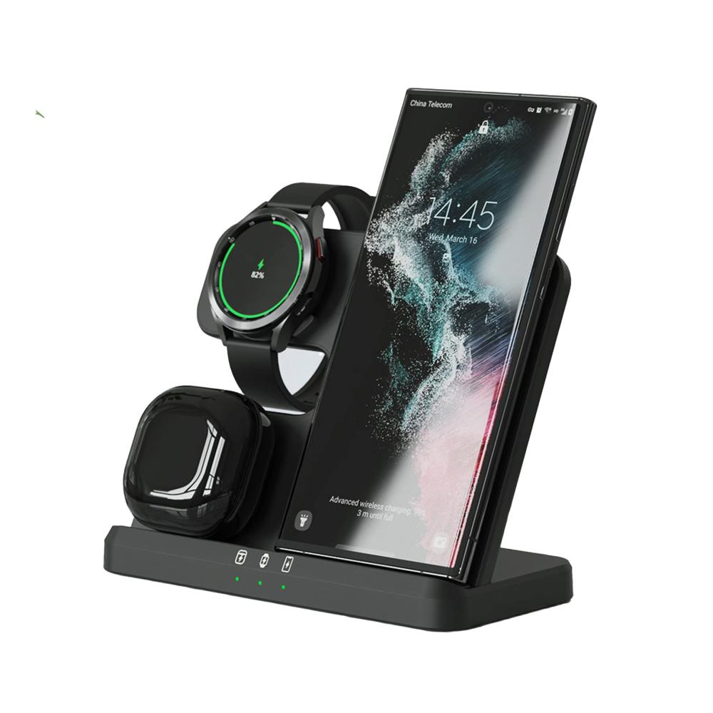 Professionelles Design: 3-in-1-Design für das kabellose Ladegerät von Samsung, ermöglicht es Ihrem Telefon, Ihrer Uhr und Ihrer kabellosen Kopfhörer gleichzeitig aufzuladen.