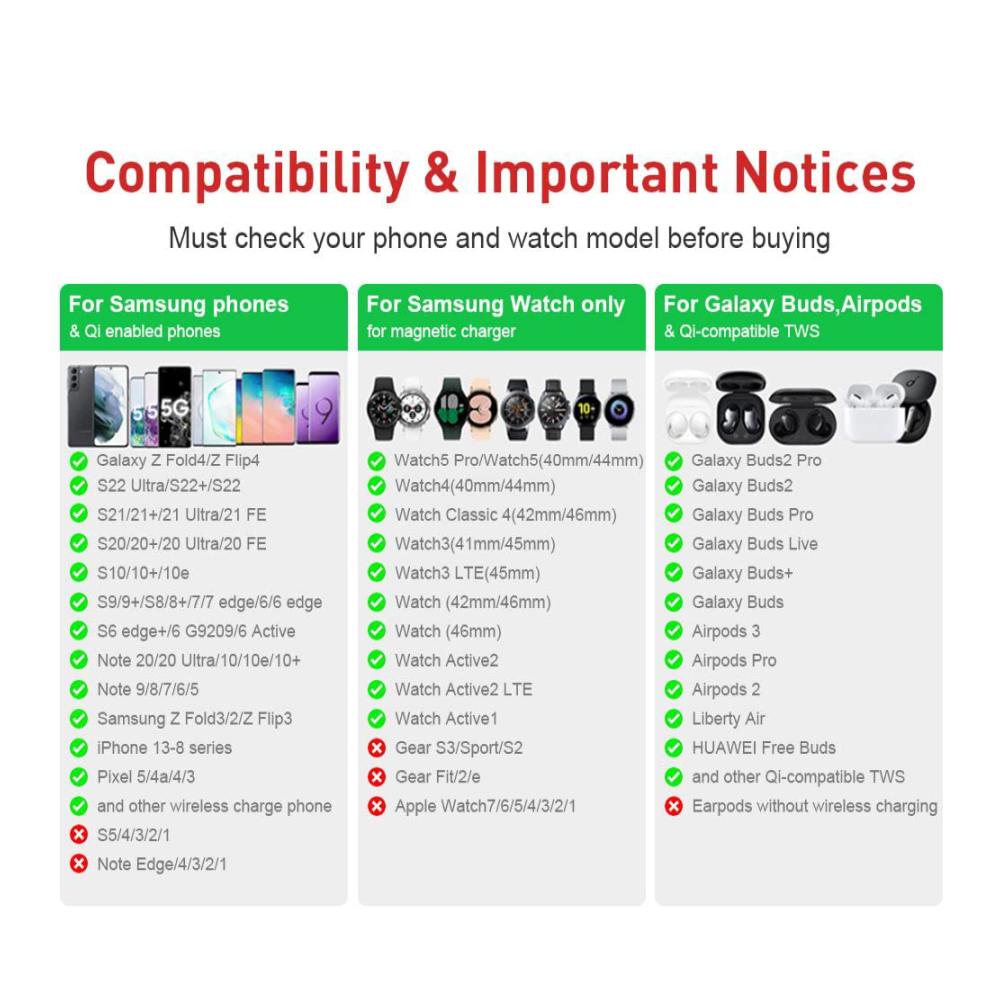 3-in-1 Induktive Ladestation: Induktionskabel kompatibel mit Samsung Galaxy S22 Ultra / S22 / S22 , S21/S21 , Ultra S21 FE, S20/S20 , Ultra S20 FE, S10/S9/S8/S7/S6-Series, Samsung Z, Flip3, Fold3/2/z; Note 20, 10, 10. 10. 10. 1. 0 , 9, 8, 7, Galaxy Watch 5/Galaxy Watch Classic 4/Galaxy Watch 4/3/Active 2/1 Galaxy Buds/Buds /Pro/Live/2,Qi Charger, kabelloses Ladegerät Samsung