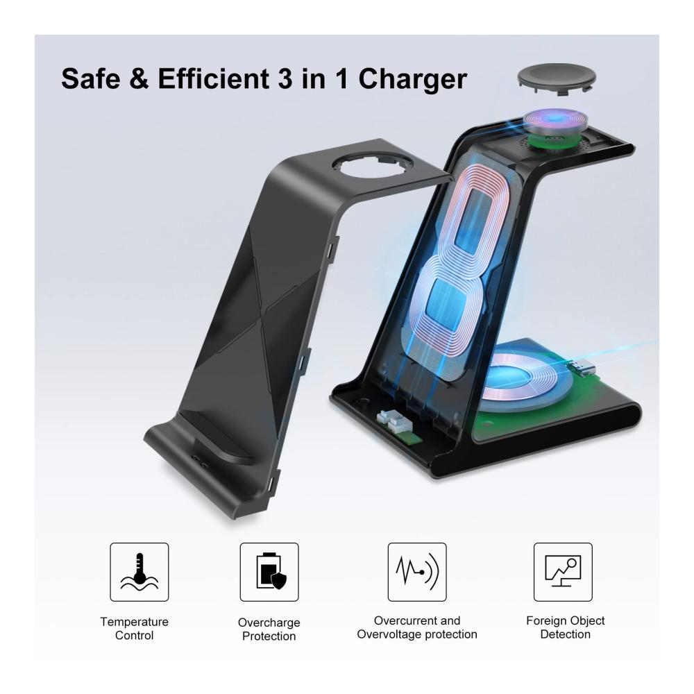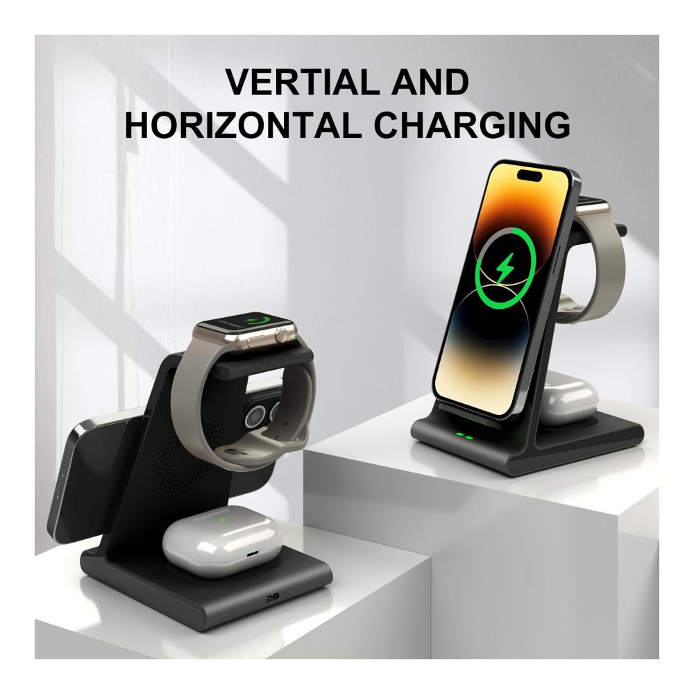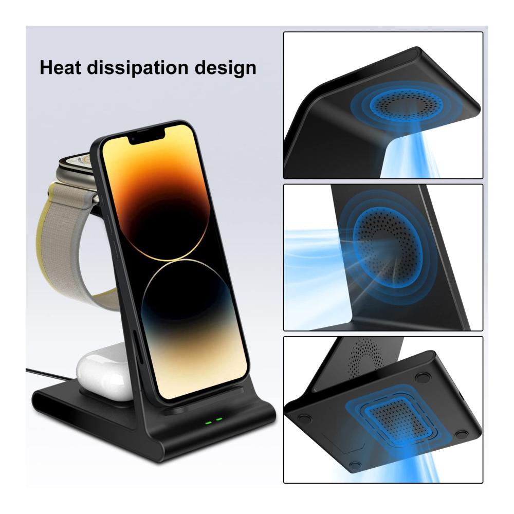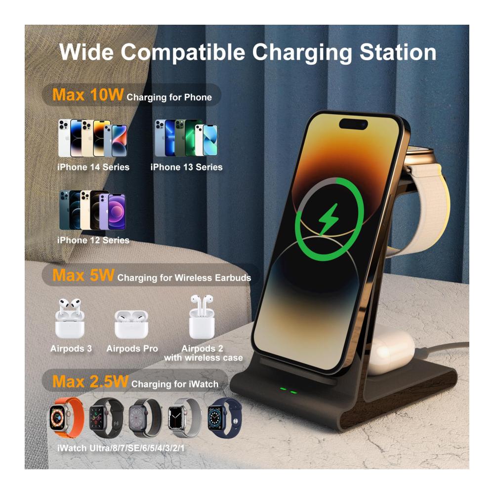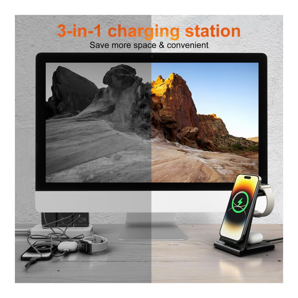 3 in 1 Kabellose Ladestation:Nur ein Kabel zum gleichzeitigen Aufladen von iPhone, Apple Watch und Airpods, für ein müheloses Ladeerlebnis, kein Kabelgewirr mehr.All-in-one-Design spart Platz auf dem Schreibtisch.Dieses Produkt wird nicht mit einem Netzteil geliefert.★Hinweis: Bitte tragen Sie keine Schutzhülle, die dicker als 5 mm ist.★