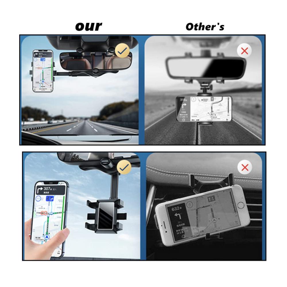 【Kein Kopfnicken mehr】: Die Handyhalterung für den Rückspiegel wird an Ihrem Autorückspiegel installiert und kann frei eingestellt werden, sodass Ihre Augen immer auf der Straße sind. Sie müssen nicht auf die Navigation schauen und genießen eine komfortablere und sicherere Benutzererfahrung.