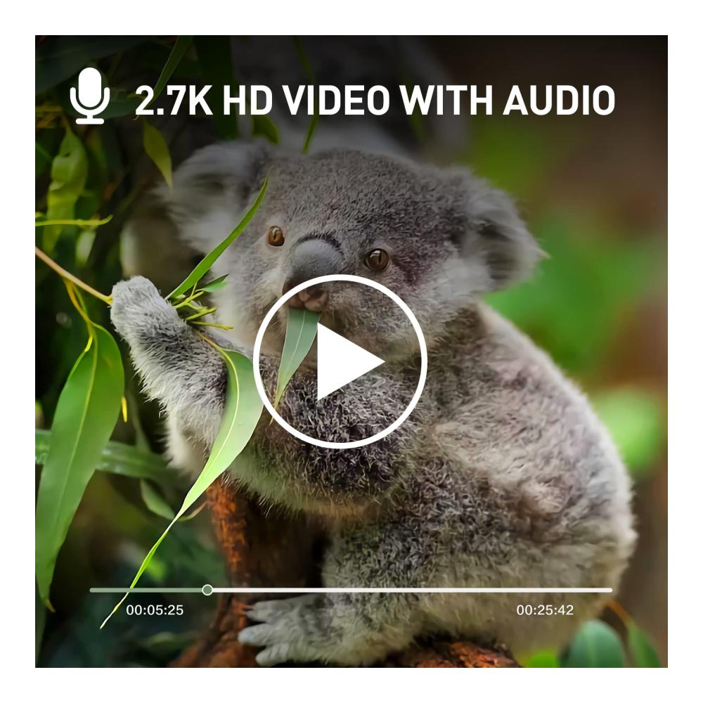 Die Kamera ist bis zu 2.7k @ 30fps Videoaufnahme mit Ton, Wiedergabe klarer, reibungsloser.