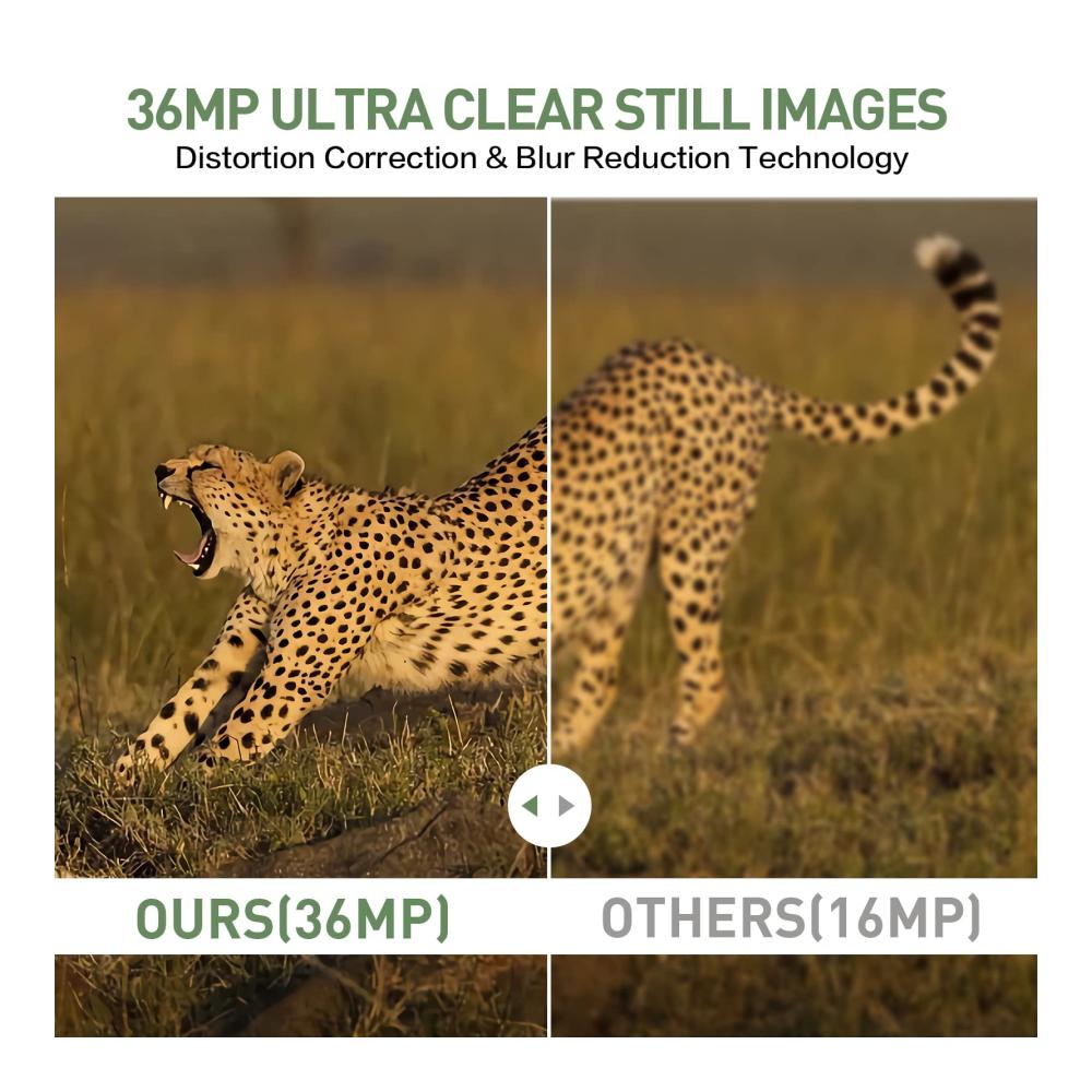 Entdecken Sie die faszinierende Welt der Natur bei Nacht mit unserer hochmodernen Wildkamera! Erfassen Sie mit einer Auflösung von 36MP und einem Erfassungswinkel von 120° die faszinierenden nachtaktiven Kreaturen, die Ihren Garten besuchen. Die blitzschnelle Reaktionszeit von 0,2 Sekunden garantiert, dass Sie keinen Moment verpassen. Ausgestattet mit Infrarot-LEDs für eine klare Nachtsicht bis zu 65ft/20m. Dank IP66 Wasserdichtigkeit ist die Kamera für jede Wetterbedingung geeignet. Erleben Sie Natur hautnah