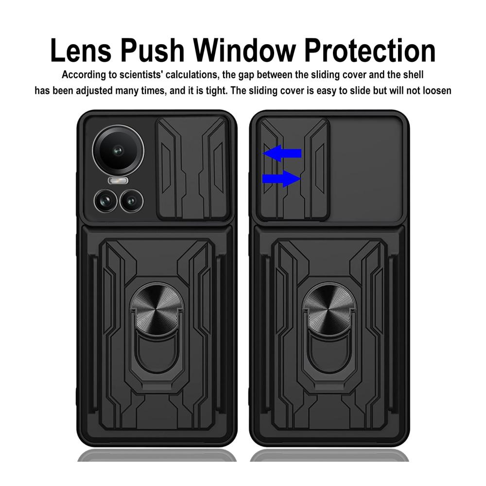 Kameraschutz: Die schützende Kameratasche mit Schiebeobjektiv kann das Telefonobjektiv bei versehentlichem Sturz vor Beschädigungen schützen und das Eindringen von Staub und Schmutz verhindern. Das Schiebefenster besteht aus hartem PC-Material, wodurch eine Beschädigung des Objektivs verhindert werden kann, was praktisch und schön ist. Umfassender Schutz: Vier Eck-Anti-Vibrations-Airbags fügen Fallschutz, Dämpfung und hervorstehendes Design hinzu, um Ihren Telefonbildschirm und das Kameraobjektiv vor jedem Sturzwinkel zu schützen. Material: Die perfekte Kombination aus harter PC-Rückenlehne und weichem TPU-Silikon-Stoßfänger, es ist sehr bequem, das Telefon zu installieren und zu entfernen und das Telefon effektiv vor Kratzern zu schützen. Eingebaute Halterung: Die Handyhülle wird mit einem Klappständer geliefert, so dass Sie Ihr Telefon horizontal auf den Tisch legen können, während Sie sich ausruhen, Ihre Hände frei halten und den Rest genießen. Schnellzugriff: Alle Tasten und Bedienelemente wie Kamera und Lautsprecher, Netzschalter, Audio-Stummschalttaste, Ladeanschluss und Lautstärketaste sind einfach zu bedienen. Packungsinhalt: 1x Hülle für OPPO Reno 10/Reno 10 Pro 5G