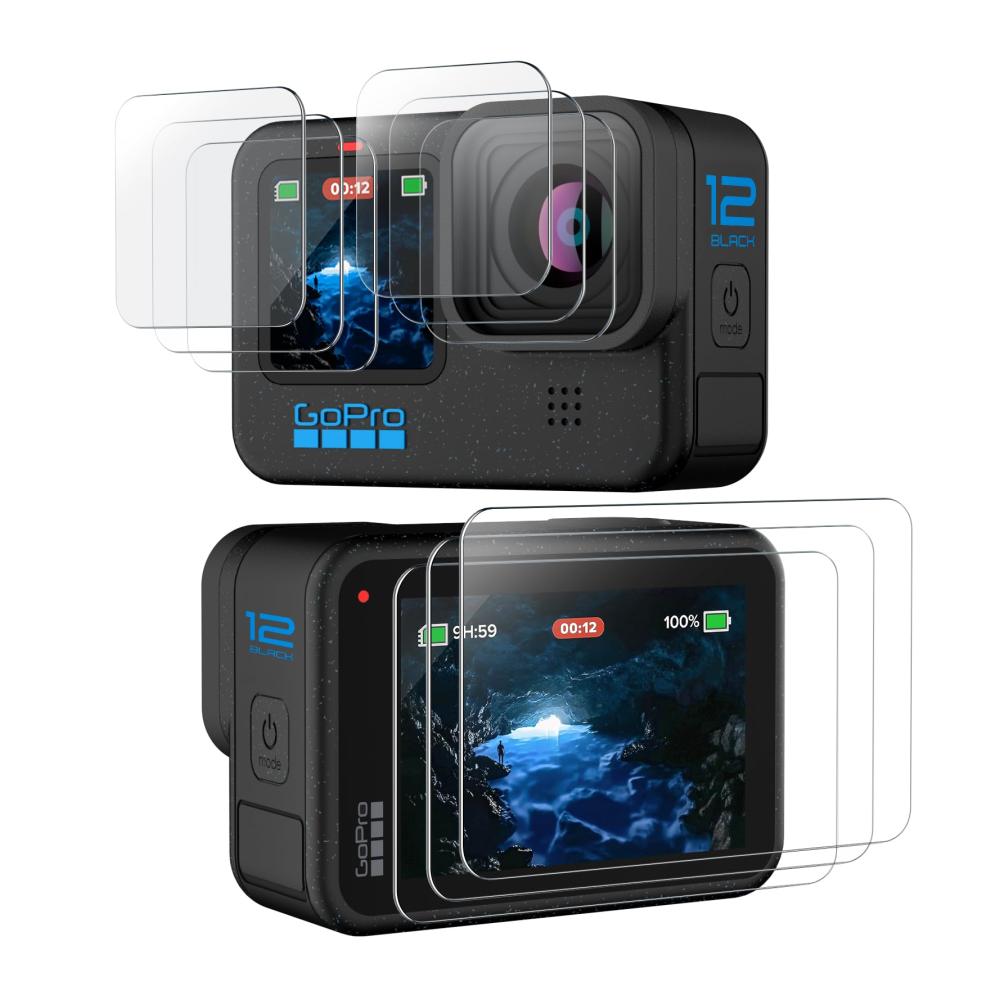 Schützen Sie Ihre GoPro Hero 12/11/10/9 Black mit diesen hochwertigen Schutzfolien. Hergestellt aus Hartglas mit einer Härte von 9H, bieten sie kratzfesten Schutz und hohe Empfindlichkeit. Wasserfest und glänzend, sind sie perfekt für Abenteuer. Das Paket enthält 3 Stück.