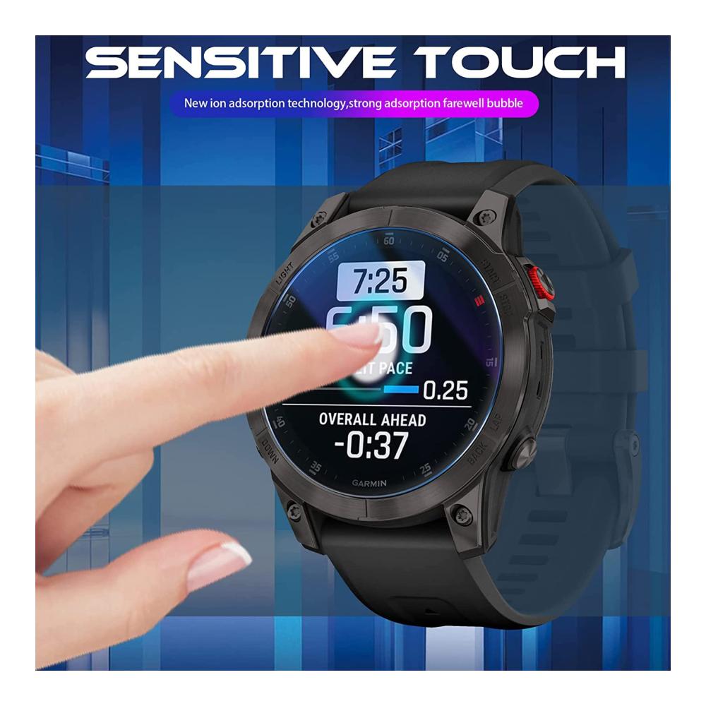 Gehärtete Beschichtung kratzfest 8-9H. Die Displayschutzfolie aus gehärtetem Glas der Garmin Epix Gen 2 ist einfach anzubringen. Mit einer Dicke von 0,3 mm fügt sie Ihrer Smartwatch keine Masse hinzu.