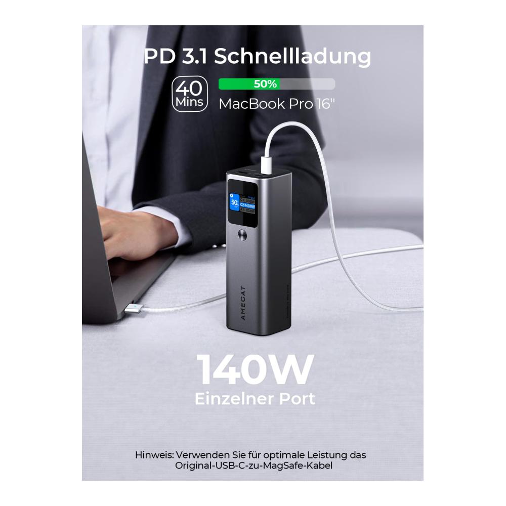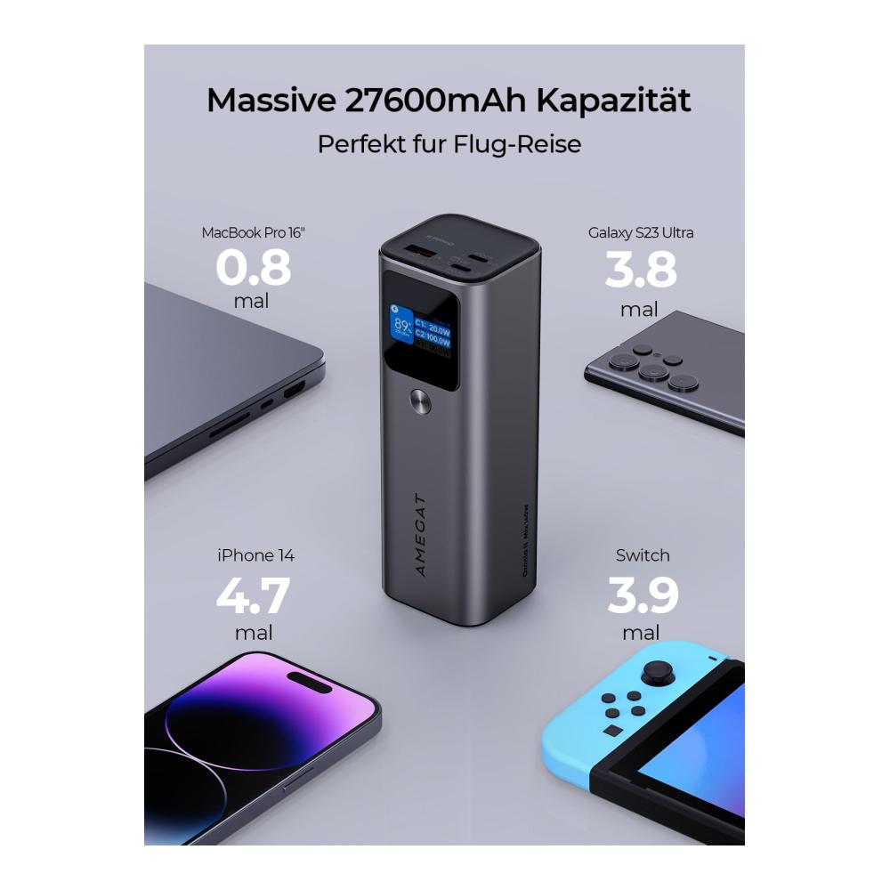 AMEGAT 27600mAh Tragbare Powerbank mit 140W PD 3.1 Ausgang
