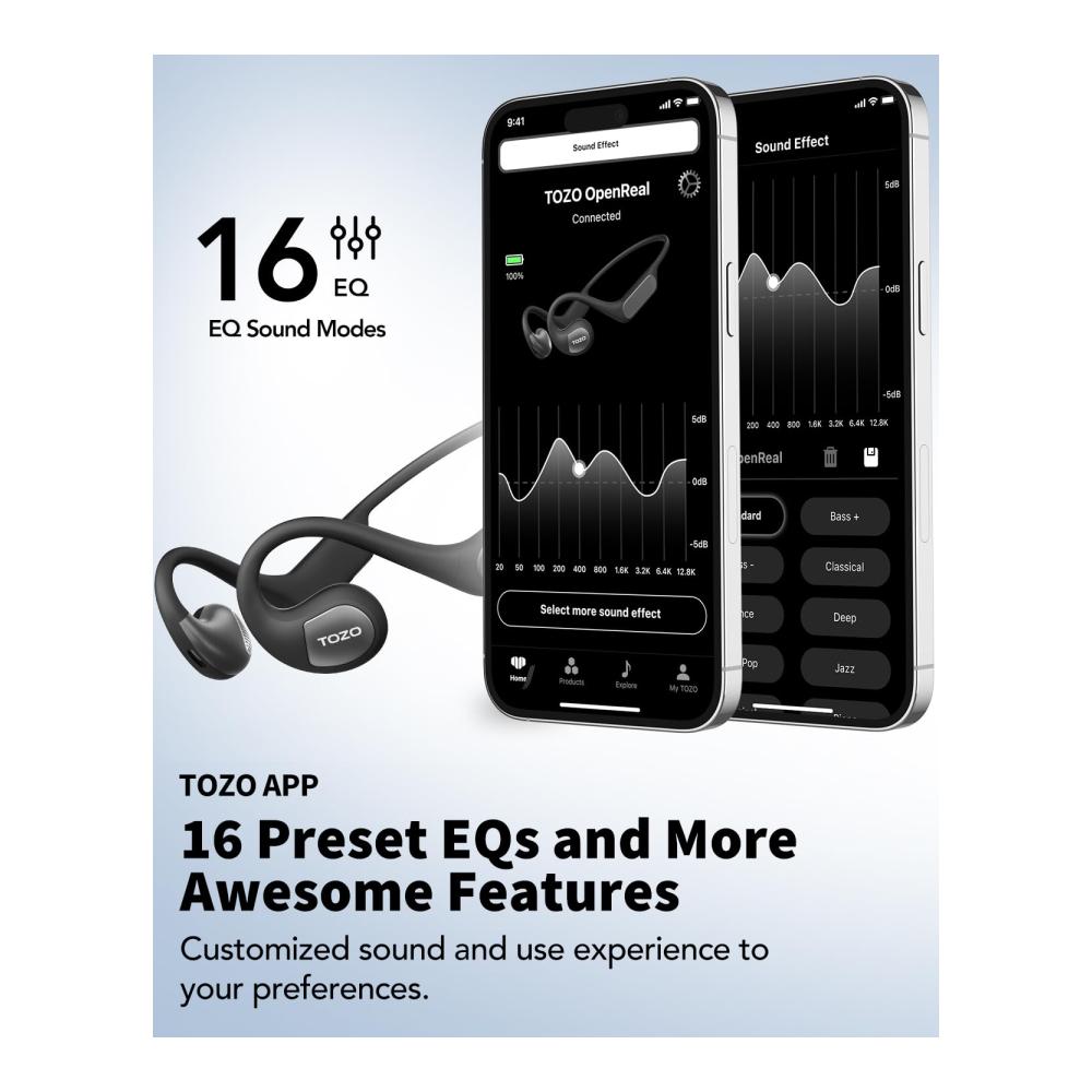 The [OpenReal True Kopfhörer Kabellos Bluetooth 5.3 Tastensteuerung Open Ear Ohrhörer Dual-Mic Anrufgeräuschunterdrückung mit Premium Sound Luftleistungs Sportkopfhörer für Laufen Radfahren Wandern] offer an unparalleled auditory experience with their open ear design. Crafted by TOZO, renowned for innovation, these wireless headphones prioritize comfort without compromising on sound quality. Engineered for various sports activities like running, cycling, and hiking, they ensure you stay connected to your surroundings while enjoying your favorite tunes. With advanced features like dual-mic noise cancellation, these headphones make every moment count, providing you the freedom to embrace life to the fullest.