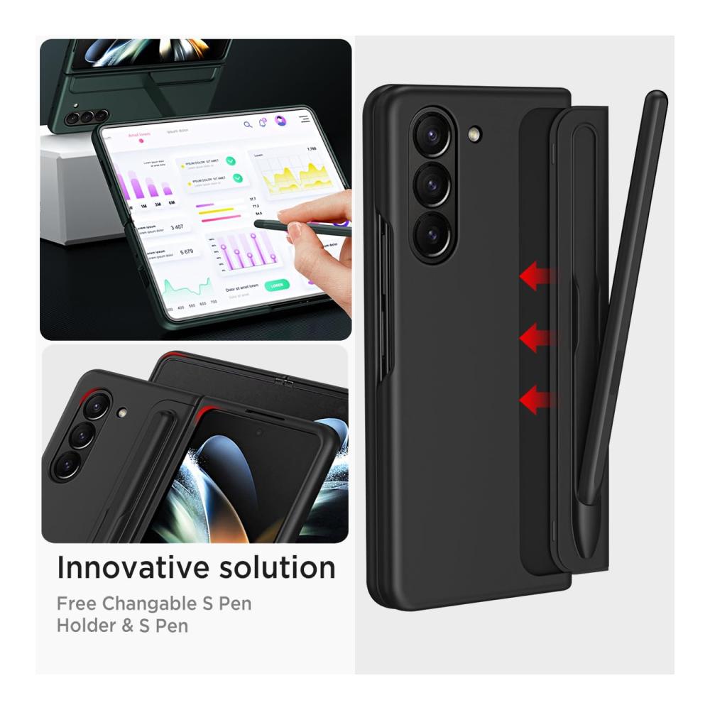 • ✏[S-Pen Halter und Stylus] Das galaxy z fold 5 case wird mit einem abnehmbaren Stifthalter und ein mitgelieferter Stift. Sie können den Stifthalter nach Belieben installieren oder entfernen, und Sie können den Stift einfach überall verwenden, ohne sich Sorgen zu machen, ihn zu verlieren.