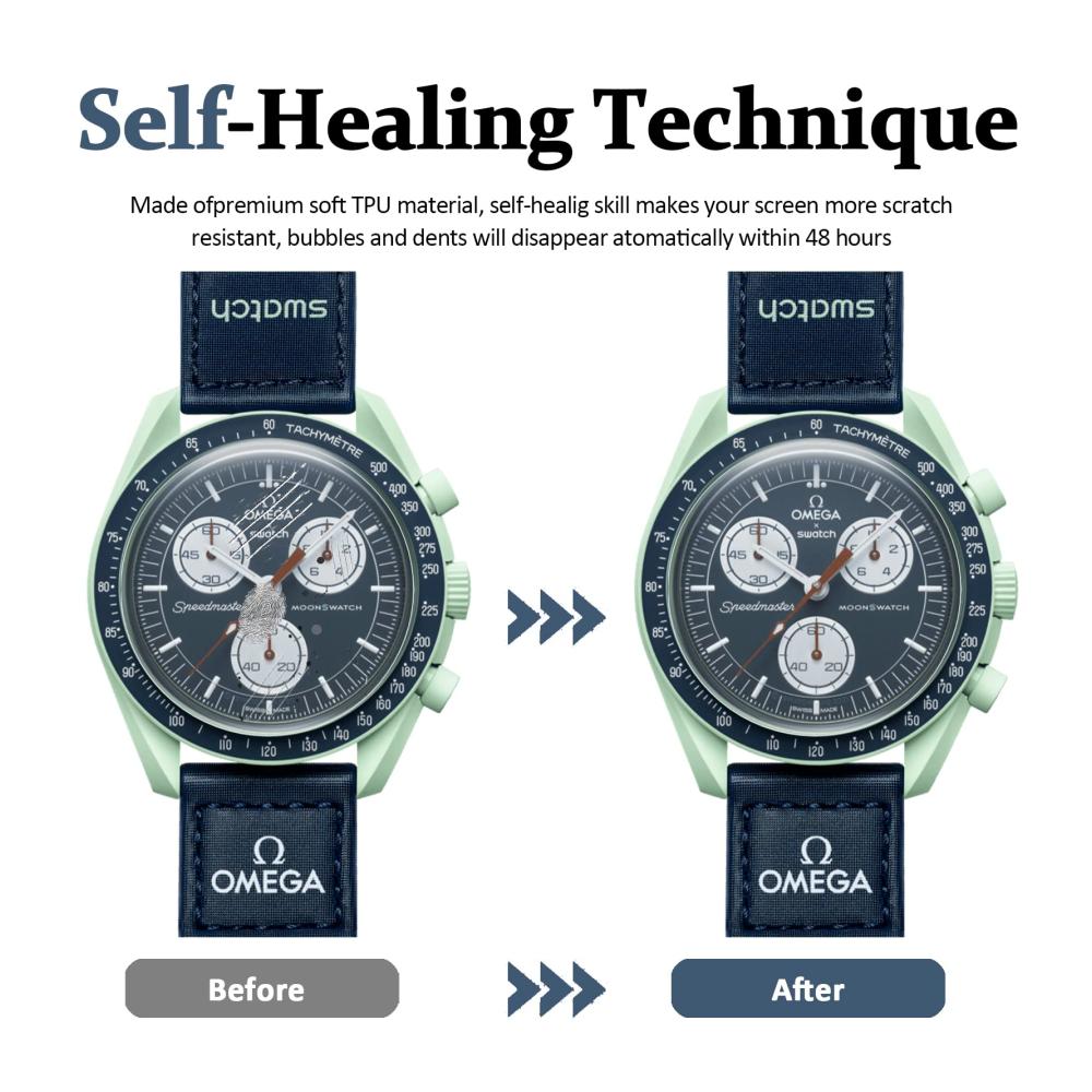 [Premium Material] Die Omega x Swatch Schutzfolie besteht aus Hochwertige TPU Material, das schützt repariert automatisch wenn Kratzer auftreten, ist Anti-Kratzen, Anti-Öl, Anti-Fingerabdruck.