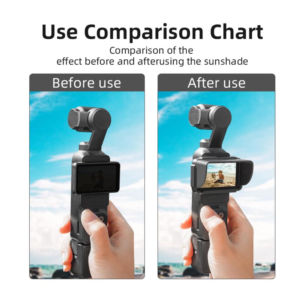 Unser hochwertiges Zubehör für den DJI Osmo Pocket 3 bietet speziell entwickelte Gegenlichtblenden, die effektiv störende Lichtreflexionen blockieren und die Bildschirmsichtbarkeit verbessern. Hergestellt aus langlebigem ABS-Material, ist unsere Sonnenblende leicht zu installieren und bietet eine bessere Sicht für Ihre Aufnahmen, egal bei welchen Lichtverhältnissen. Genießen Sie klare Bilder und ein verbessertes Aufnahmeerlebnis mit unserem Zubehör!