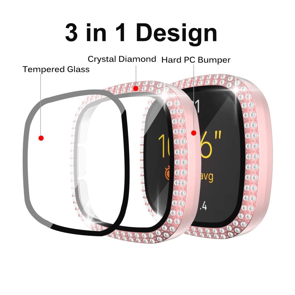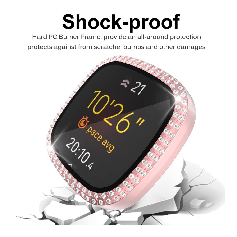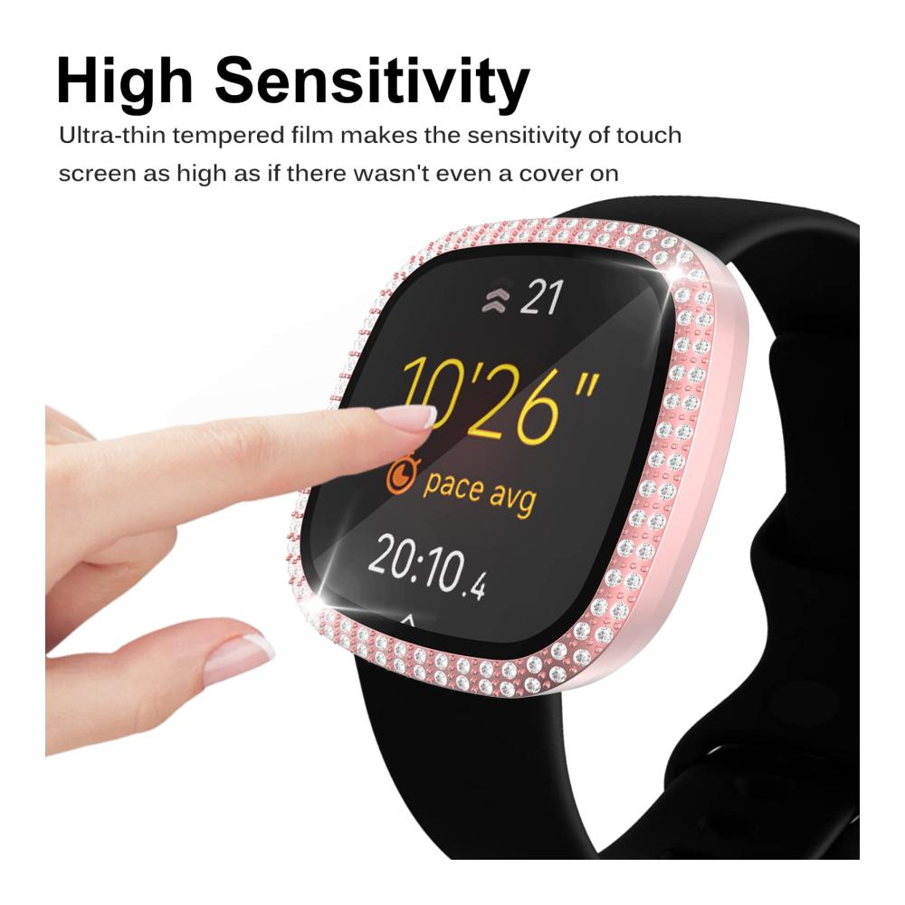 Diese exquisite Hülle bietet umfassenden Schutz für Ihre Fitbit Versa 3 oder Sense. Das Gehäuse besteht aus hochwertigem PC und ist mit einer gehärteten Glas Displayschutzfolie ausgestattet. Die brillanten Strassdiamanten verleihen Ihrer Uhr einen glamourösen Look. Mit 360-Grad-Abdeckung schützt es vor Staub, Fingerabdrücken und Kratzern. Das schlanke Design beeinträchtigt nicht die Touchscreen-Genauigkeit. Bitte beachten Sie die Hinweise zur Reinigung und Kompatibilität. Lieferumfang: 1 x Hülle, 1 x Nass- / Trockentücher, 1 x Staubentfernungsaufkleber.