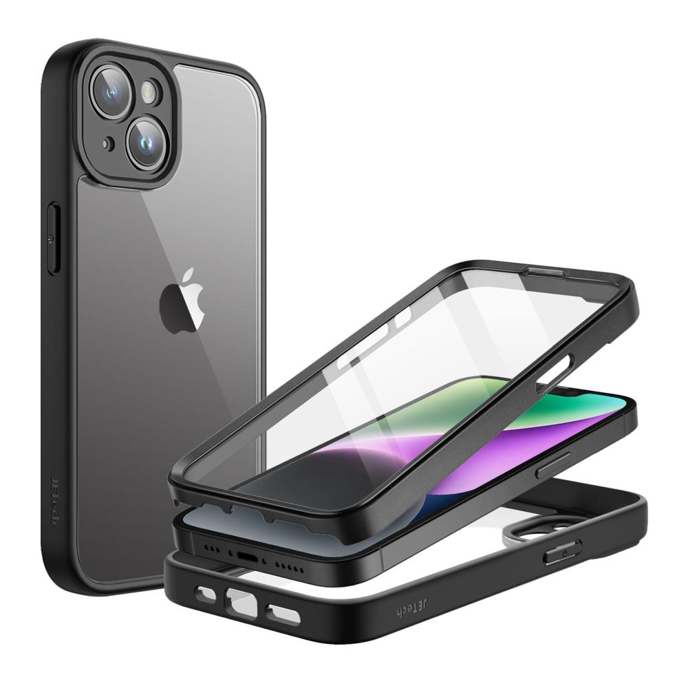 JETech Hülle für iPhone 14 6,1 Zoll mit Eingebaut Gehärtetem Glas Schutzfolie, Vollständiger Kameraabdeckung für Rundumschutz, Stoßfeste Stoßfänger Handyhülle Klare Rückseite
