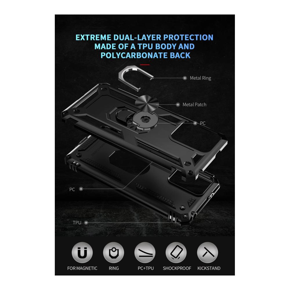【360° Drehbarer Ständer】 Diese Telefonhülle ist mit einem metallringförmigen Telefonhalter ausgestattet, der sich um 360 Grad drehen lässt, sodass Sie Ihre Hände beim Trainieren, Fotografieren oder Filmen richtig befreien können. Die eingebaute Metallmagnetplatte der Halterung kann direkt und stabil an der Automagnethalterung adsorbiert werden, so dass Sie leicht navigieren und fahren können.