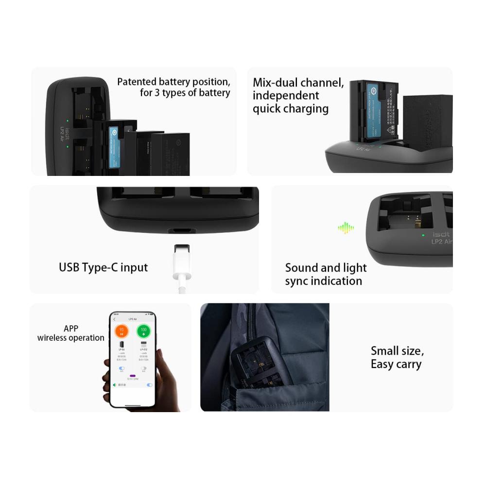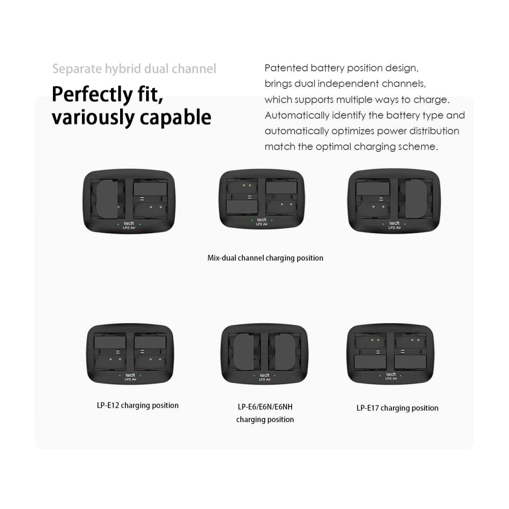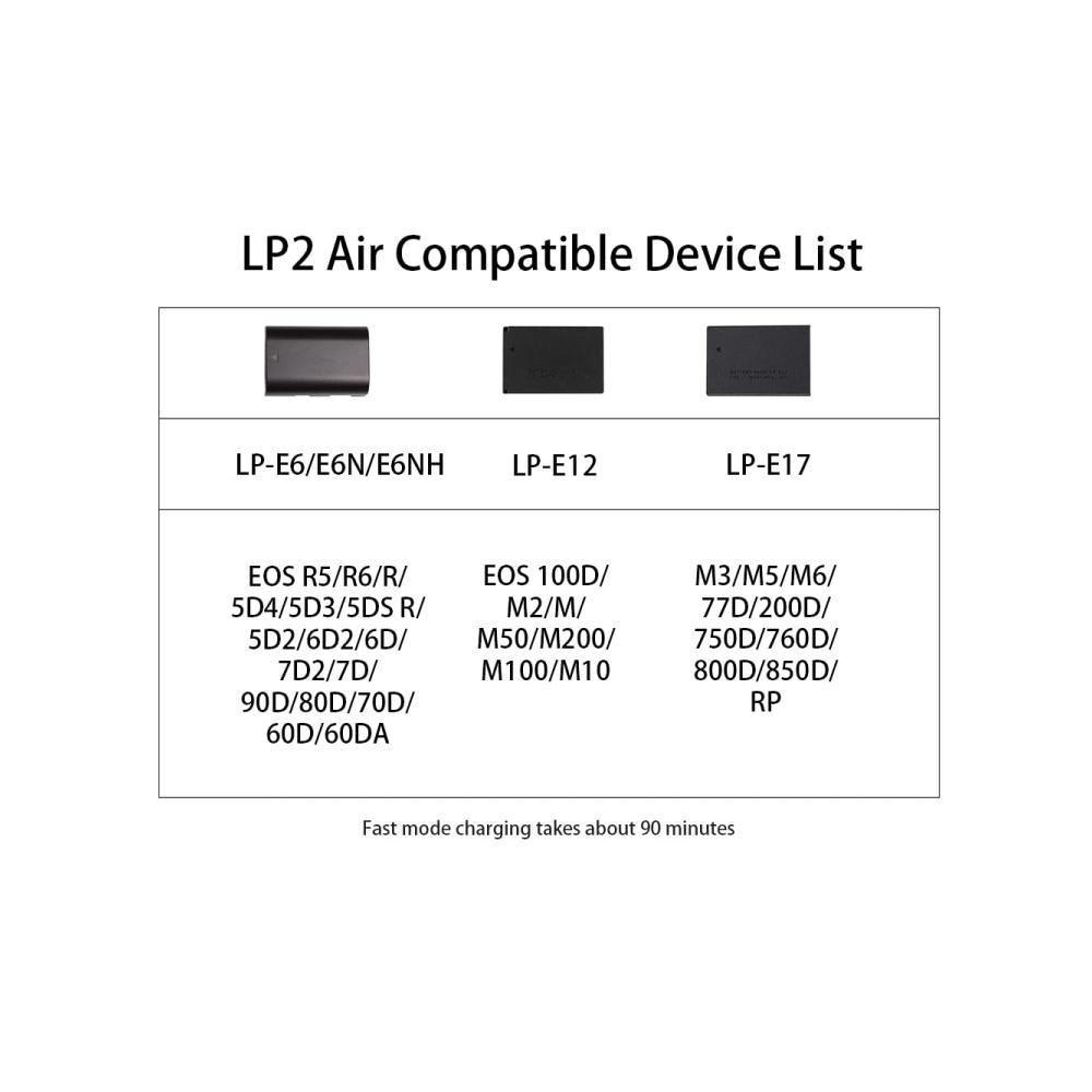 Das LP2 AIR LP-E6 E6N E6NH LP-E12 LP-E17 Kamera Akkuladegerät Set ist ein vielseitiges Ladegerät, das perfekt mit Canon EOS 90D, 80D, 70D, 60DA, 7D Mark II, 7D, 6D Mark II, 5D Mark IV, 5D Mark III, R, R5 kompatibel ist. Mit seinem USB Type-C Eingang, einem kompakten Design und einer maximalen Ausgangsleistung von 25 W ist es ideal für unterwegs. Das Ladegerät unterstützt verschiedene Ladeprotokolle und bietet einen Normalmodus (ca. 120 Minuten) sowie einen Schnellmodus (ca. 90 Minuten). Dank des intelligenten Designs können Sie Ihre Batterien bequem laden und dabei die Stromverteilung optimieren. Eine Must-Have-Ausrüstung für Fotografen!