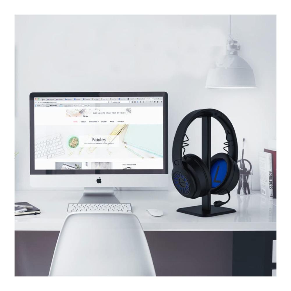 Mit unserer Premium Kopfhörerständer Halterung präsentieren wir Ihnen die ideale Lösung zur Aufbewahrung Ihrer Gaming Kopfhörer. Der Kopfhörer Ständer ist universell einsetzbar und eignet sich perfekt für alle Kopfhörermodelle. In elegantem Schwarz gehalten, fügt sich unser Ständer nahtlos in jedes Gaming-Setup ein.