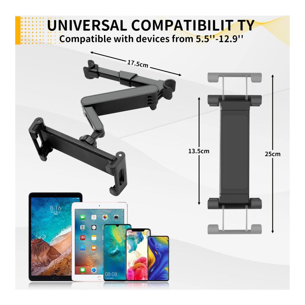 🚗 Universelle Kompatibilität – Dieser Tablethalter – Kopfstützenhalterung für Autos kann mit allen 5.5 -12.9-Zoll-Geräten verwendet werden.