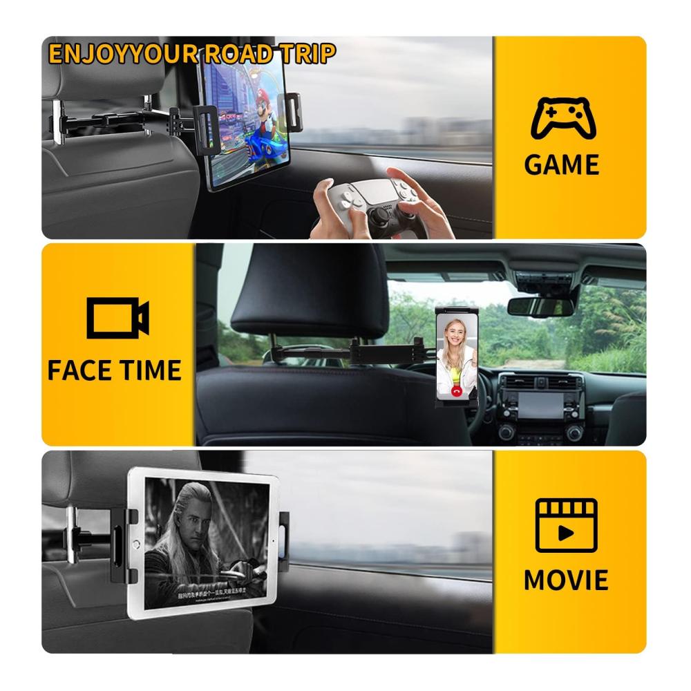 🚗 Genießen Sie Ihr Leben – Mit der universellen Kopfstützenhalterung können Sie Ihre Hände bei Fernreisen vollständig loslassen, Bücher lesen, Filme ansehen und aus einem bequemen Blickwinkel Video-Chat führen. Es ist ein unverzichtbares Autozubehör, damit Sie das Leben genießen können.