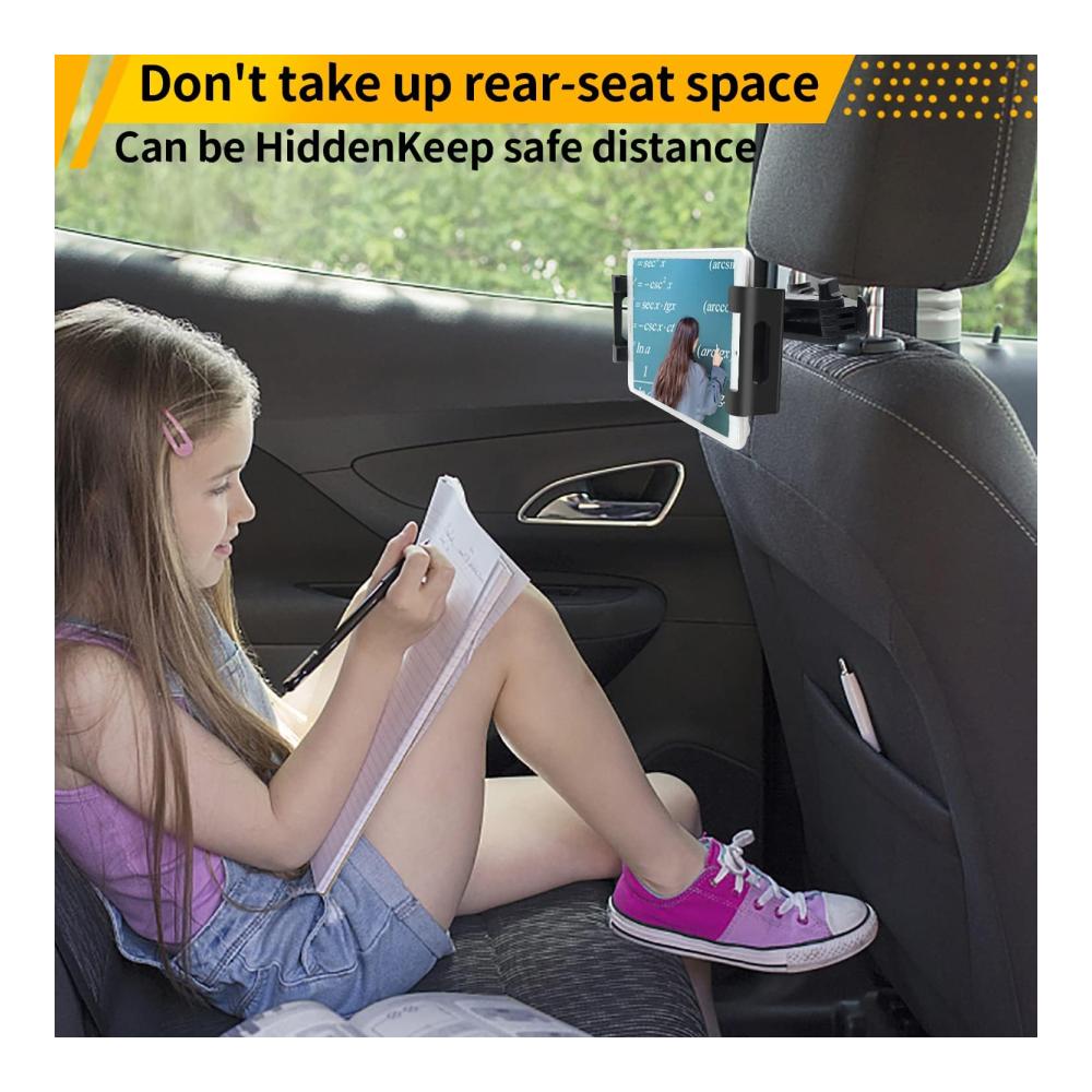 🚗 Schnelle Installation – Es besteht aus starken und hochwertigen Aluminium- und ABS-Materialien. Es kann sofort installiert werden, indem die ausziehbaren Füße der Kopfstützenhalterung auf dem Rücksitz eingestellt werden. deren Abstand zwischen zwei Metallsäulen zwischen 12.5cm-15cm(4.92-5.9 Zoll) reicht.