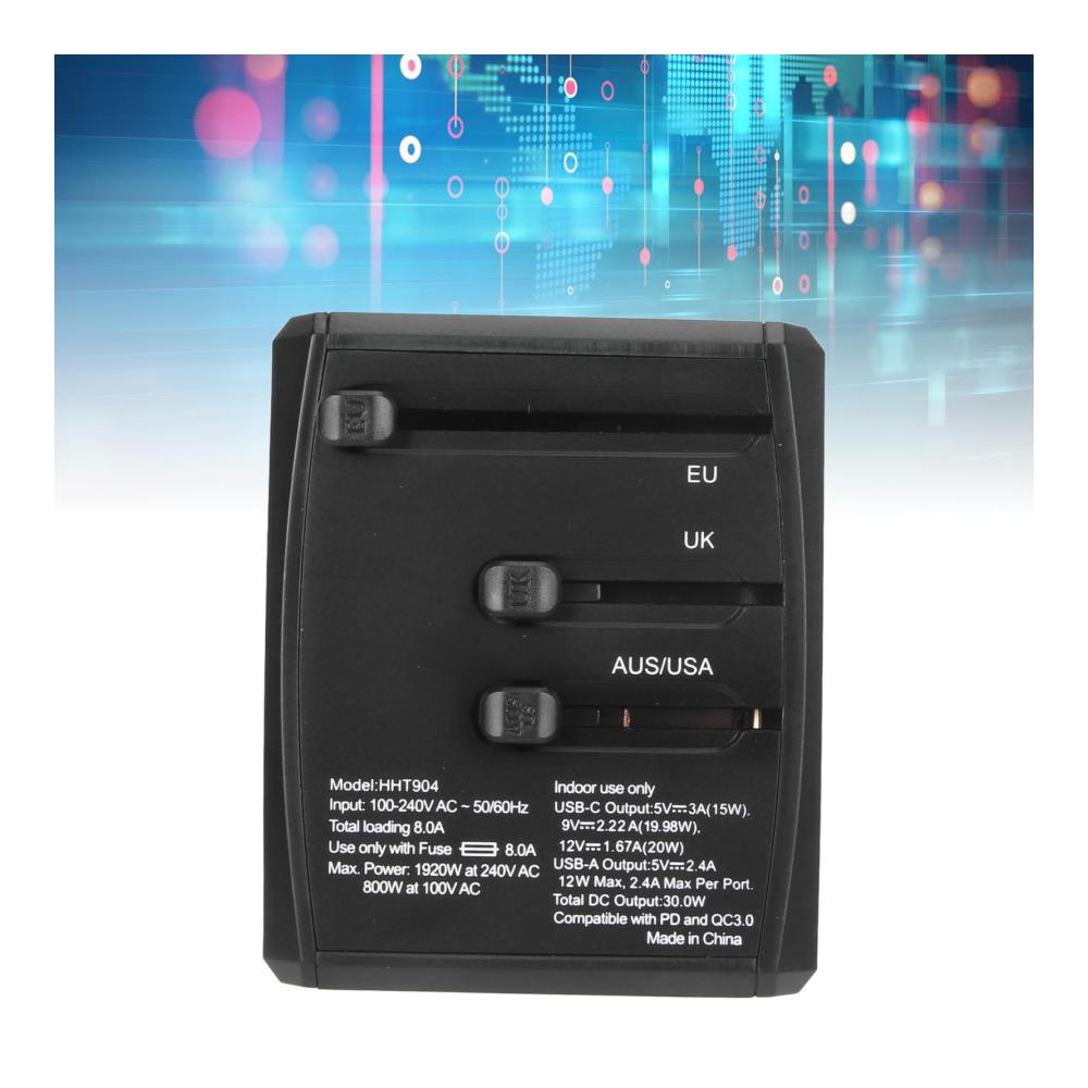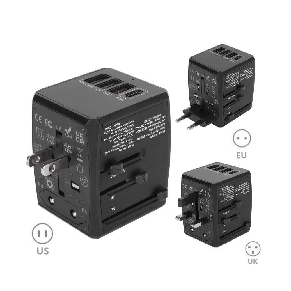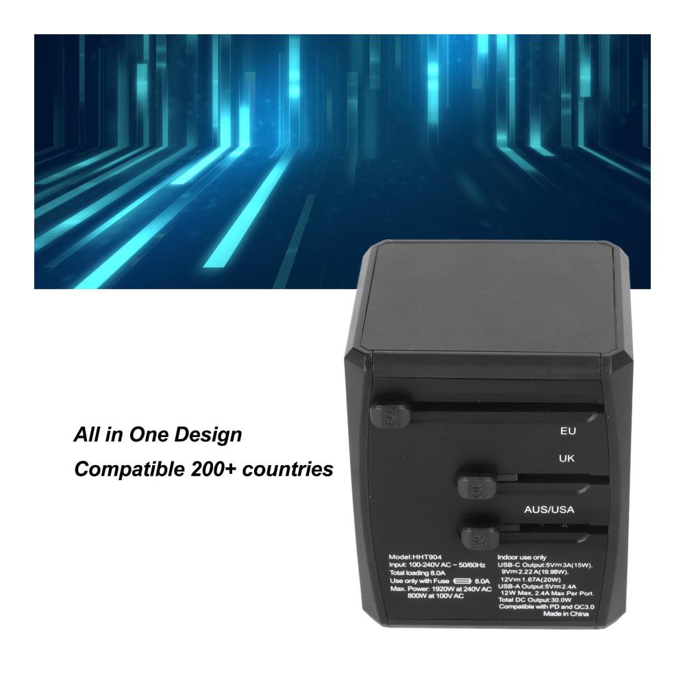 Der Adapter verfügt über 3 USB-Anschlüsse sowie einen Typ-C PD-Schnellladeadapter, der eine ultraschnelle Ladegeschwindigkeit für Ihre Smartphones, Tablets und Kameras ermöglicht. Egal, ob Sie durch Europa, Asien oder Amerika reisen, dieser Adapter ist mit einer Vielzahl von Steckdosen kompatibel und macht es einfach, Ihre Geräte überall aufzuladen.