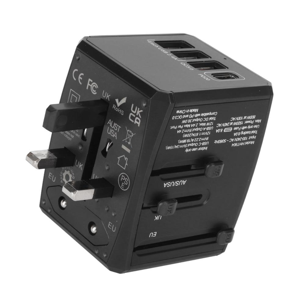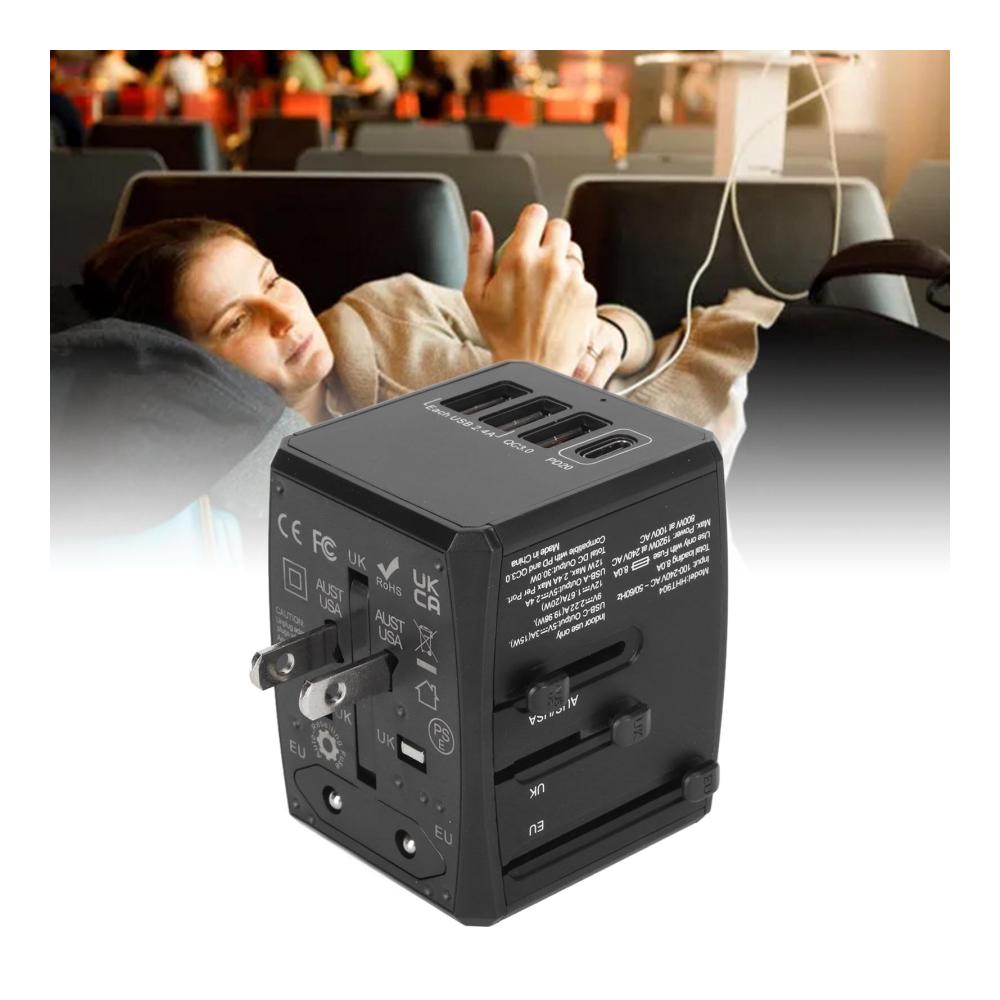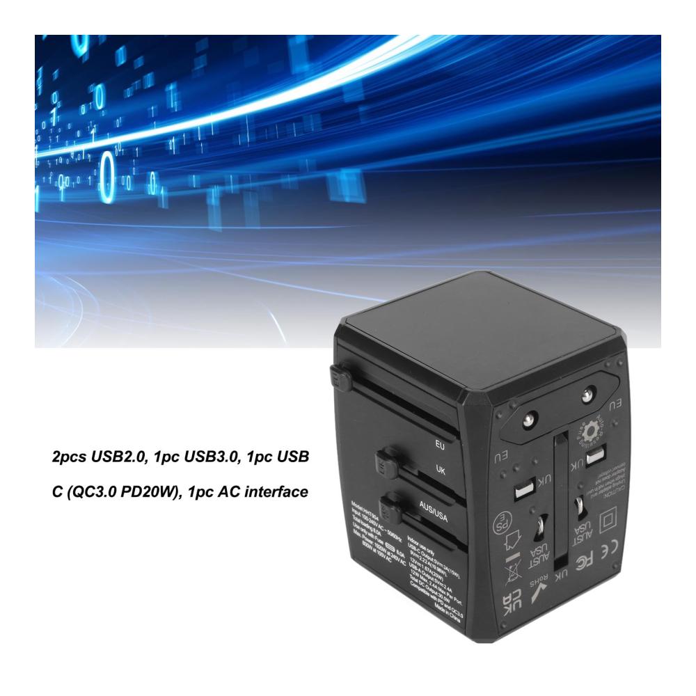 Multi-Port-Aufladung: Der Global-Adapter verfügt über 2 USB 2.0-, 1 USB 3.0-Ladeanschlüsse und einen QC3.0 PD20W USB C-Ladeanschluss, sodass Sie alle Ihre Geräte, einschließlich Smartphones, Tablets, Kameras und mehr, gleichzeitig aufladen können.