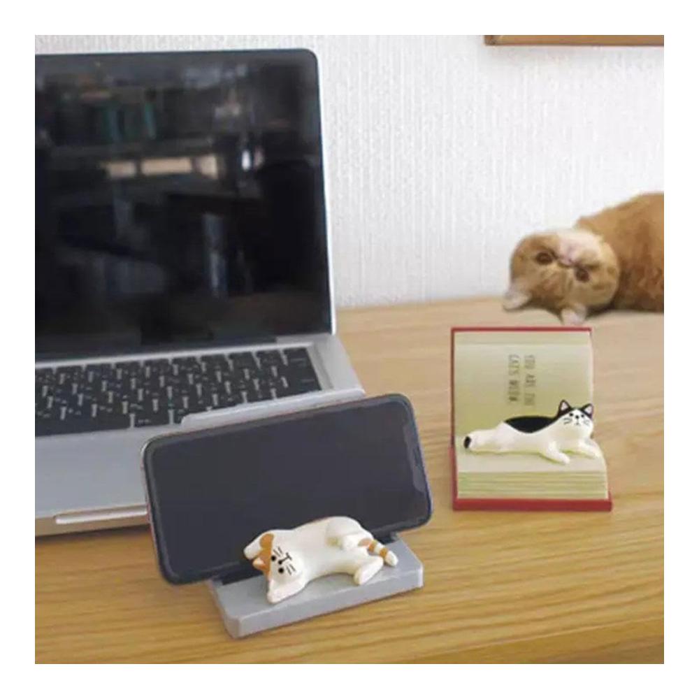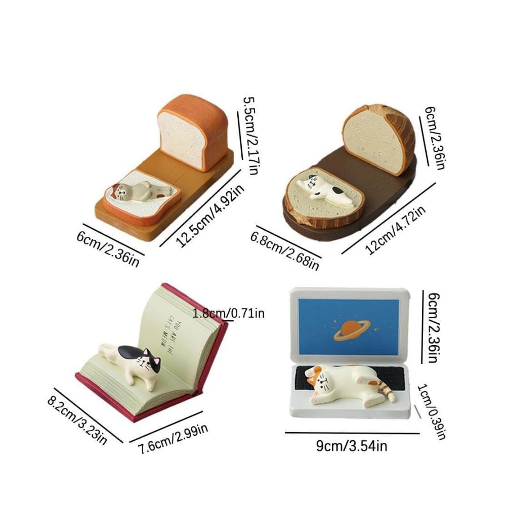 Modisches Design: Das Desktop-Handy ist mit niedlichen Katzen entworfen, was bedeutet, dass es zu einer sehr niedlichen Dekoration werden kann. Es gibt verschiedene faule Katzen, einige liegen auf Büchern, einige liegen auf Toast und einige liegen auf Puff, posieren in verschiedenen Posen gleichzeitig, sehr niedlich.