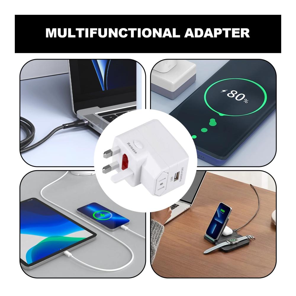 Unser multifunktionaler Reiseadapter ist mehr als nur ein Ladegerät – er ist ein unverzichtbares Wandladegerät für Laptops und Tablets, das Sie auf Ihren Abenteuern begleitet. Ausgestattet mit flammhemmendem Material und integrierter Sicherung bietet er Schutz vor Überladung und Kurzschlüssen. Mit einer Spannung von 100–250 V und einer maximalen Ausgangsleistung von 2,4 A ist dieser internationale Netzadapter perfekt für den weltweiten Einsatz geeignet. Seine Vielseitigkeit ermöglicht es Ihnen, Platz und Geld zu sparen, indem Sie auf verschiedene Adapter verzichten. Ein Must-have für Reisende!
