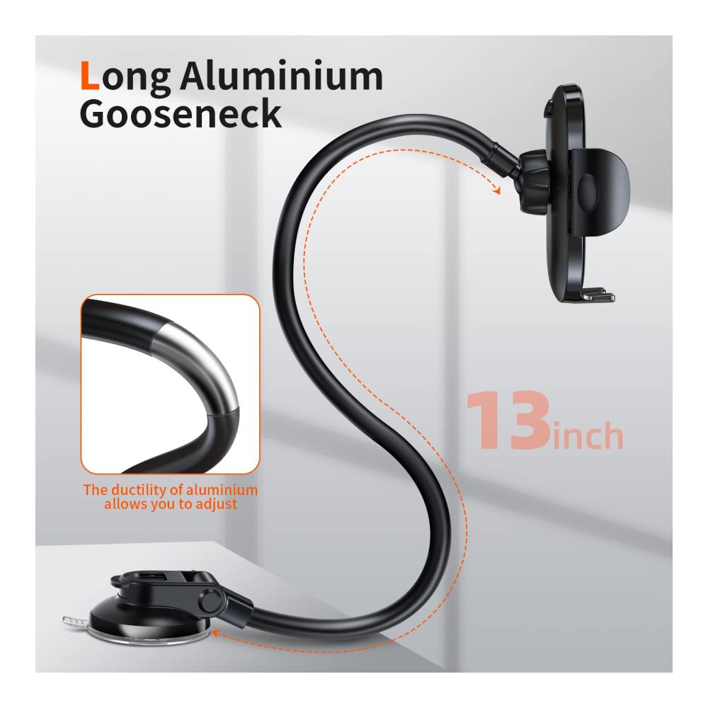 【13in/30cm Aluminium Schwanenhals-Stange】Aus zwei Materialien, ABS-Außenmembran Aluminium-Schwanenhalsrohr, wählen Sie dieses Material und die Schwanenhalsstange kann so eingestellt werden, dass sie auf holprigen Straßen nicht wackelt; die 13 Zoll/30 cm Aluminium-Schwanenhalsstange ermöglicht es Ihnen, die Position des Handyhalterung Auto Saugnapf nach Ihren Wünschen für eine optimale Nutzung anzupassen.