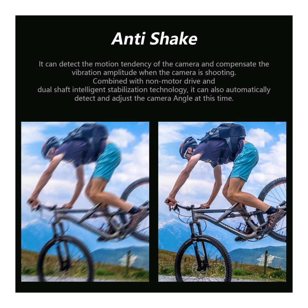 • Stabilisierung funktion: Die Kamera kann die Bewegungs neigung erkennen und die Schwingungs amplitude während der Kamera kompensieren. Kombiniert mit motor loser Antriebs-und Doppelwellen-intelligenter Stabilisierung stech no logie kann die Sport kamera auch den Winkel der Kamera automatisch erkennen und einstellen. Auch wenn der Shooter in Bewegung bleibt, kann das Video grunds ätzlich stabil bleiben, ohne die Bildqualität zu beeinträchtigen.