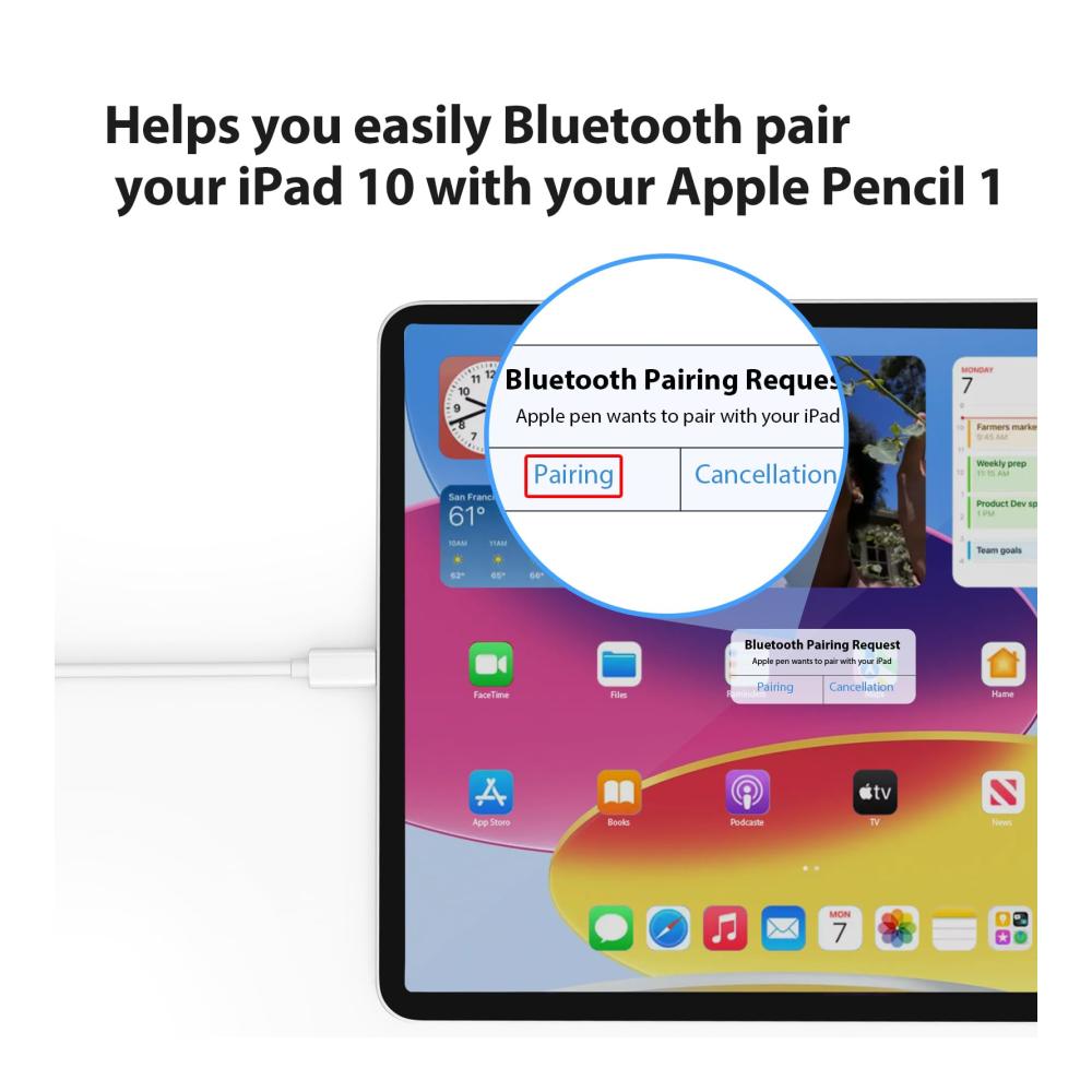 Adapter Kabel mit Bluetooth-Funktion. Ermöglicht es Ihnen, Ihren Apple Pencil 1 schnell mit Ihrem iPad 10 zu koppeln.