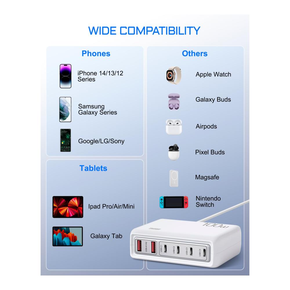 【Universelle Kompatibilität】: Die usb c ladegerät 6 lade port kann praktisch alle Ihre Mobil- und Tablet-Geräte mit USB-C und Standard-USB-Eingang mit maximaler Geschwindigkeit aufladen, zB. alle USB-C- und USB-A-Geräte unter 20 W, zum Beispiel: für Apple i Phone 15/14/13/12/11 / pro max / XS / XS Max / XR / X / 8 Plus / 8 / 7 / 6 /, i Pad Pro / i Pad Air / i Pad Mini / AirPods / AirPods Pro / Samsung Galaxy S21/20, Google Pixel, Motorola, Apple Watch, Mag-safe Wireless Charger und mehr.