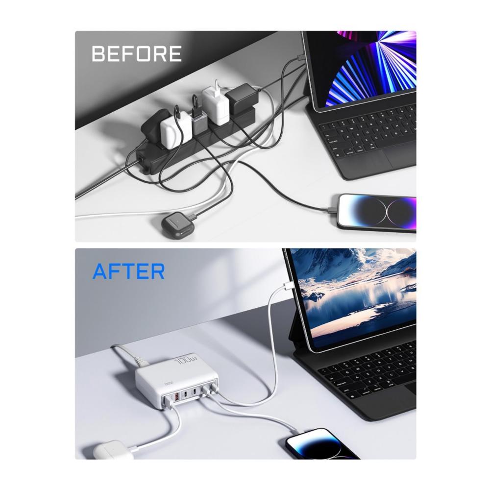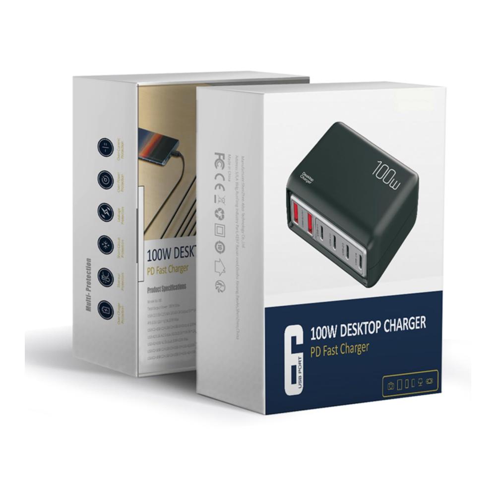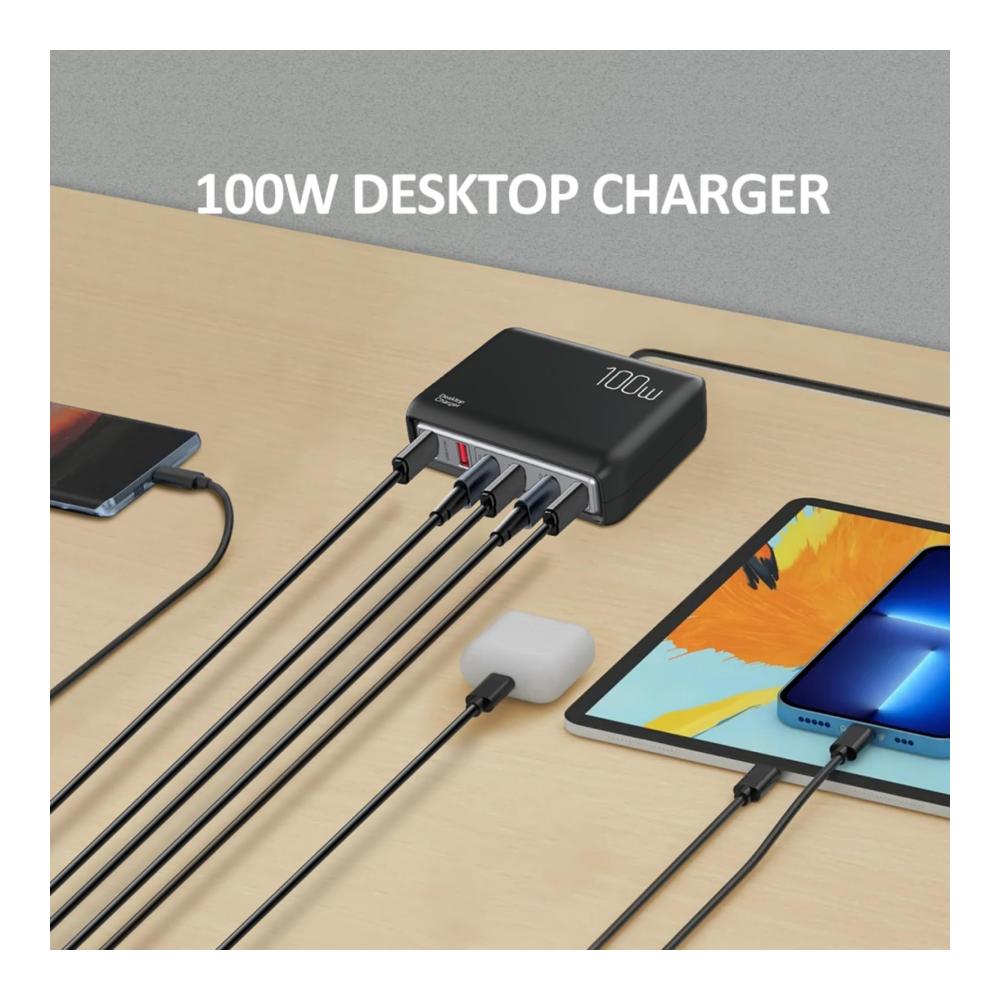 Paket Inhalt100 W Desktop-USB-Ladegerät (mit 4ft AC Netzkabel) x 1* Wenn Sie Bedenken bezüglich dieser Multi USB C Ladestation haben, teilen Sie uns dies bitte direkt über Amazon mit.Spezifikationen der 100W usb c netzteil mit 6 AnschlüssenEingang: 100–240 V ~ 50/60 Hz, 2,0 A maxUSB-C1 / C2 / C3 / C4 Ausgang: 20 W (5 V/3 A, 9 V/2,22 A, 12 V/1,67 A)USB-A1/A2-Ausgang: 18 W (5 V/3 A, 9 V/2 A, 12 V/1,5 A)Tischladegerät und Kabel-Organizer:Mit dem Ladegerät USB C Multi Port können Sie Ladegeräte und Kabel mehrerer Geräte bequemer verwalten, mehr wertvollen Platz auf dem Schreibtisch sparen und ihn übersichtlicher und schöner aussehen lassenSparen Sie Zeit:6-Port USB C ladegerät mit 4 USB-C-Anschlüssen und 2 USB-A-Anschlüssen, die das gleichzeitige Laden von 6 Geräten mit voller Geschwindigkeit ermöglichen.Sicherer und zuverlässiger Ladeblock: Der integrierte intelligente GaN-Chip mit mehreren Schutzsystemen stoppt den Ladevorgang automatisch, wenn der Akku voll ist, und bietet maximalen Schutz für Ihre Geräte.Gut für Reisen:Die mehrfach usb c schnellladegerät ist kompakt und leicht und lässt sich leicht transportieren. Es kann Ihren Bedarf zum Laden mehrerer Geräte decken, egal ob zu Hause, im Büro, auf Reisen oder unterwegs.Breite Kompatibilität des 100W USB Ladestation:Die usb power adapter mit USB-A- und USB-C-Anschlüssen kann Ihren Ladebedarf für mehrere Geräte decken. Power Delivery-USB-C-Anschluss für das neueste Telefongerät (wie i Phone 15/14/13/12 Pro/iPad usw), während der Schnellladeanschluss für andere USB-A-Android-kompatible Geräte (wie Pixel 7/6/3/4XL, Samsung Galaxy A53/A13/A03S, Motorola usw.) , Jedes Gerät kann das am besten geeignete Ladeprotokoll finden.