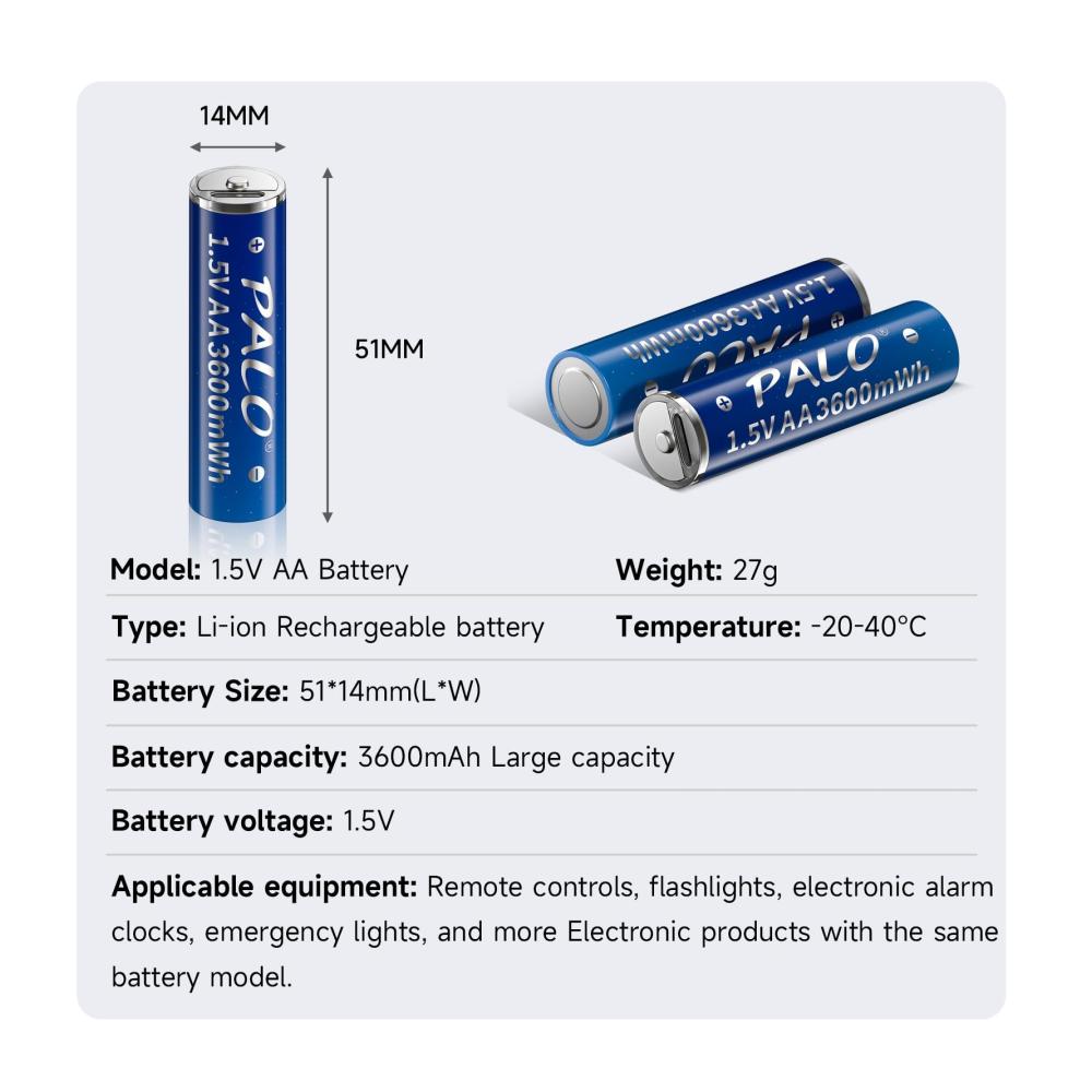 - Wiederaufladbare 1,5V AA Lithium-Batterie, können Sie Geld sparen kann 1200~1500 mal wiederverwendet werden, keine Notwendigkeit, Einweg-Trockenbatterien kaufen.