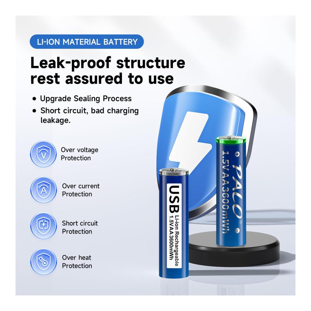 Entdecken Sie das leistungsstarke USB-C Lithium-Akku-Set. Inklusive 8 wiederaufladbare 1,5V AA-Akkus mit 3600mWh Kapazität. Die innovative USB-C-Ladetechnologie ermöglicht schnelles und bequemes Aufladen ohne zusätzliches Ladegerät. Diese Akkus sind perfekt für Kameras und bieten eine sichere und geschützte Energiequelle. Genießen Sie 50% schnelleres Aufladen im Vergleich zu früheren Generationen. Mit geringer Selbstentladung und CE-, ROSH- und UKCA-Zertifizierung für Ihre Sicherheit.