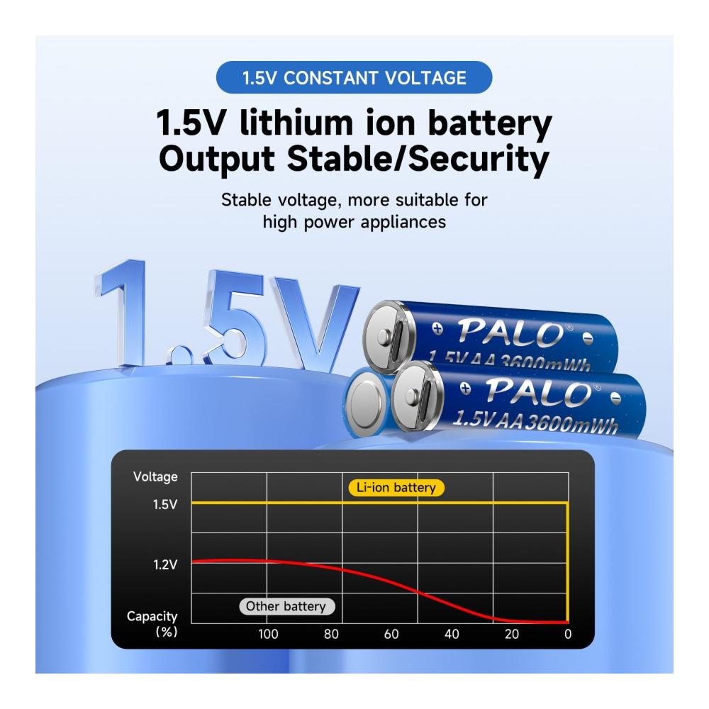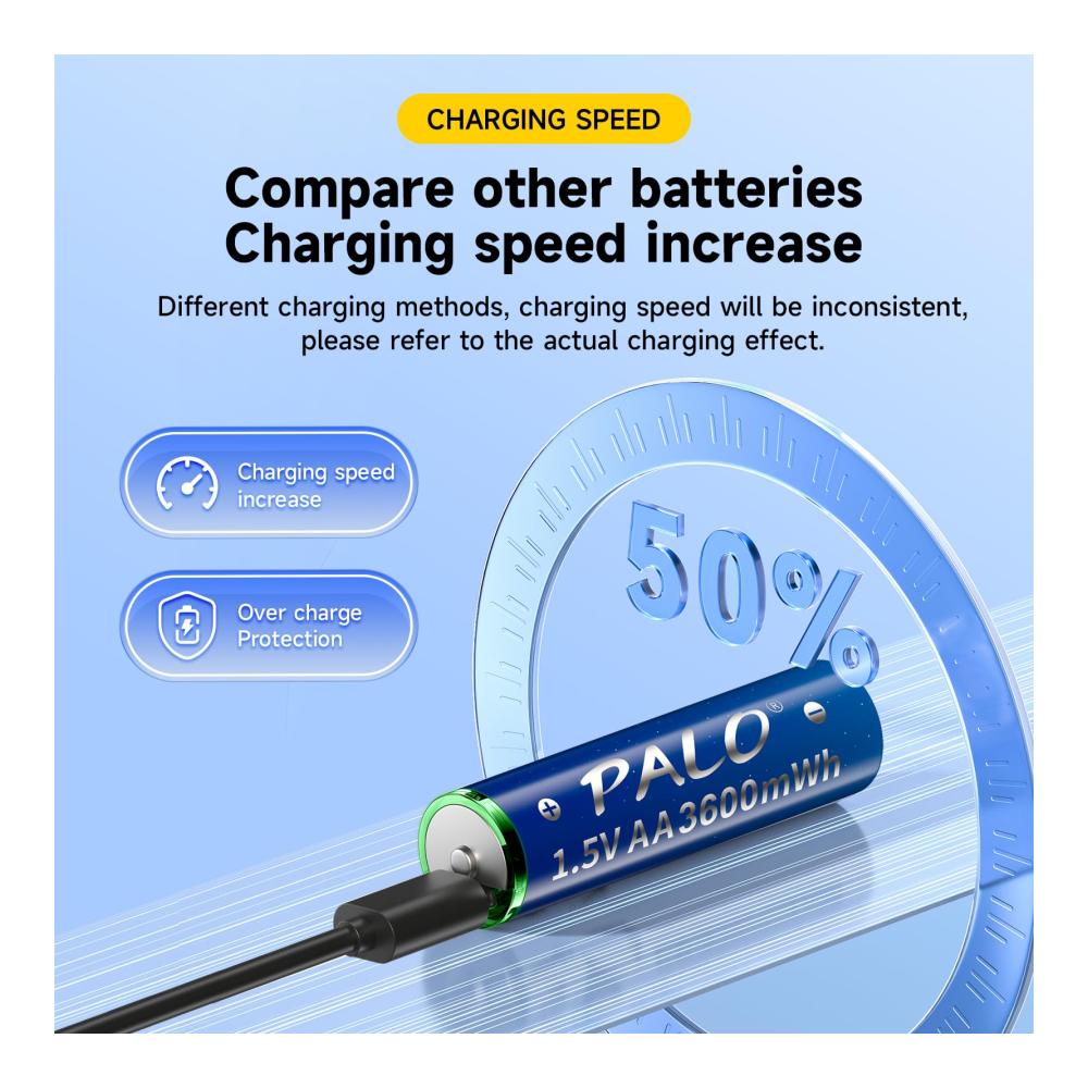 • Mit der neuesten Ladetechnologie lädt es 50% schneller als die vorherige Generation von AA-Lithium-Batterie-Geräten und benötigt nur 1-2 Stunden.