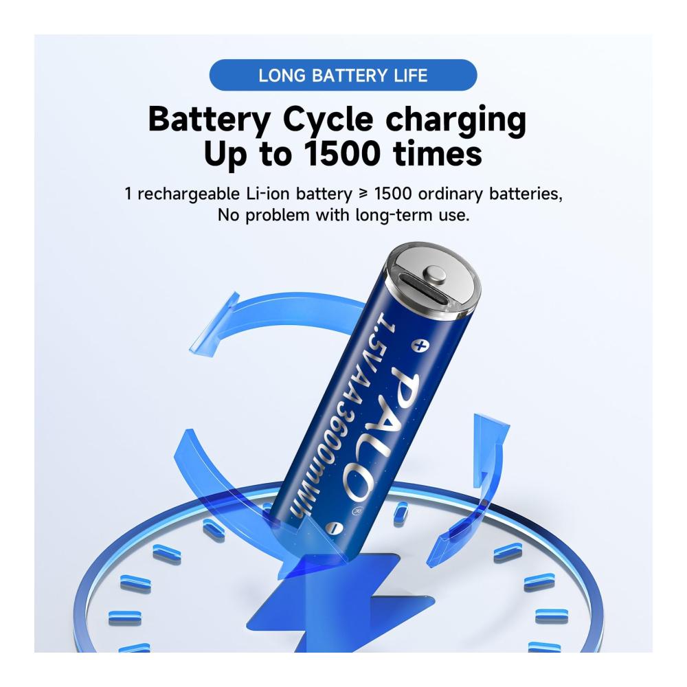 Hocheffizientes Ladegerät für Haushaltsbatterien – 8 AAA Lithium-Akkus mit 1.5V und 1100mWh – 1300 Ladezyklen – Schnellladung in 2 Stunden – Konstanter Ausgang – Geringe Selbstentladung