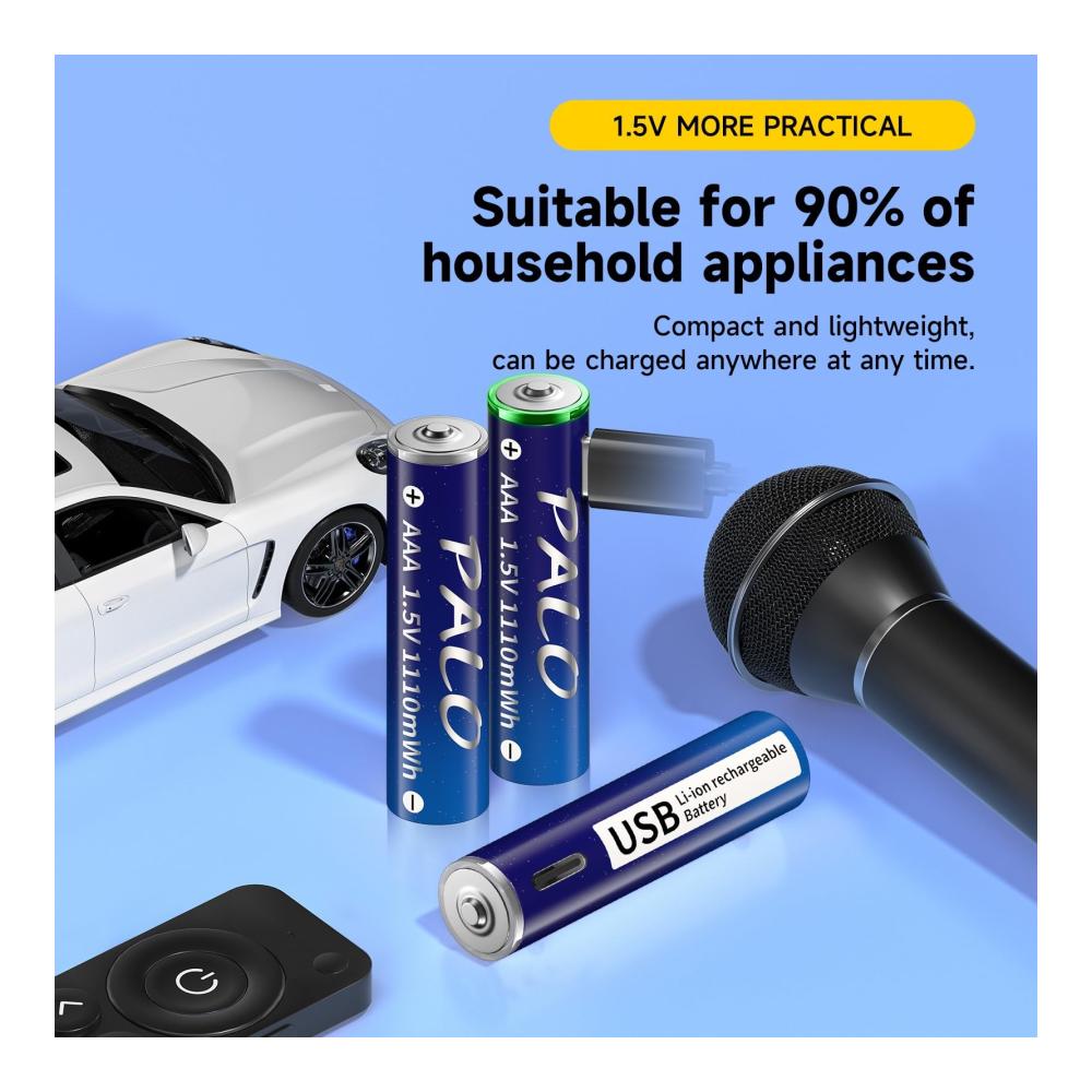 - Wiederaufladbare 1,5V AAA Lithium-Batterie, können Sie Geld sparen kann 1200~1500 mal wiederverwendet werden, keine Notwendigkeit, Einweg-Trockenbatterien kaufen.